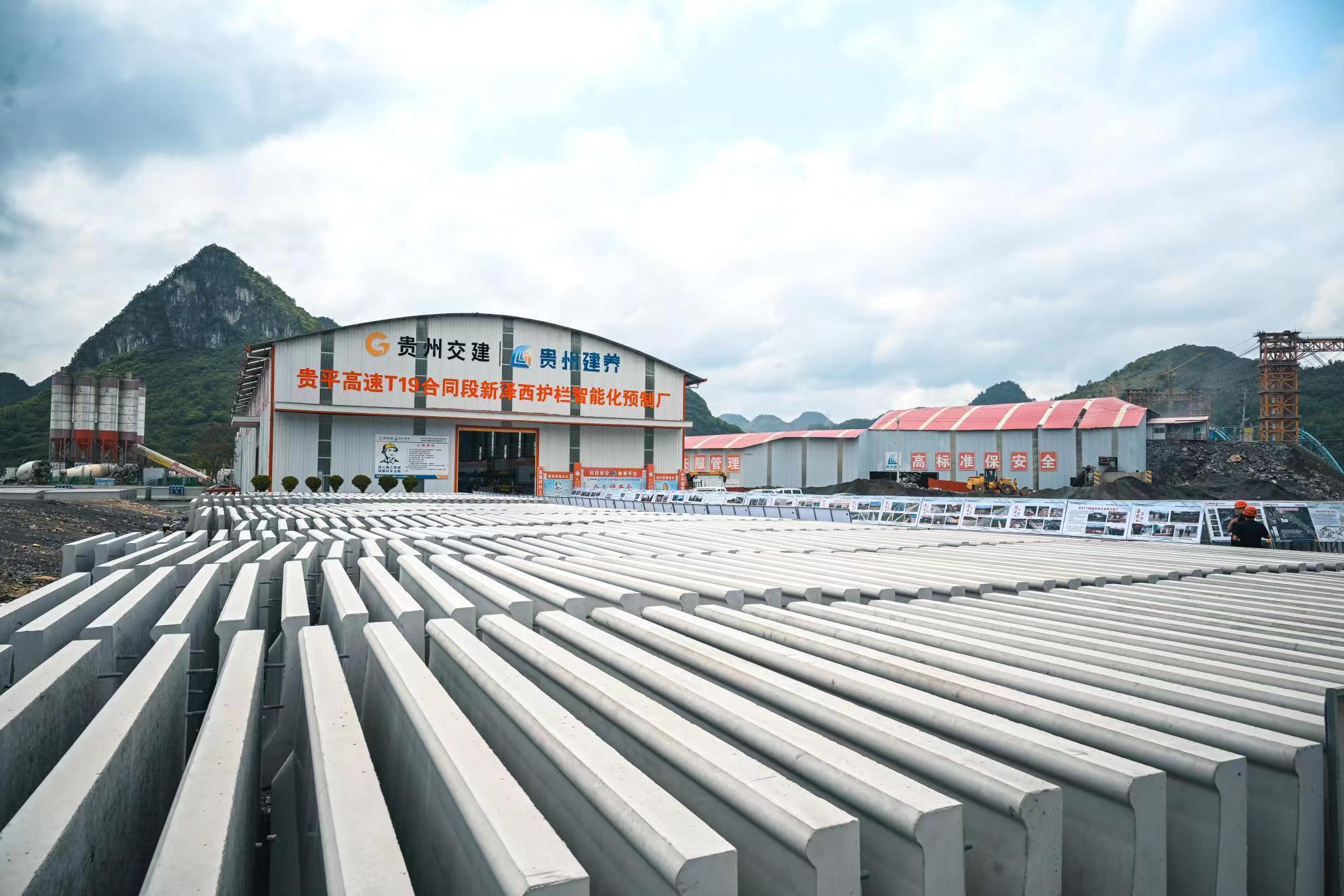 贵平高速新泽西护栏智慧预制厂引入了30套模板,护栏日产能可达90块。目前,已产出,下一步,将扩大产能,预计在今年9月完成贵平高速全长174公里2.4万片生产任务。