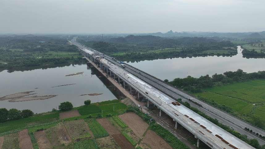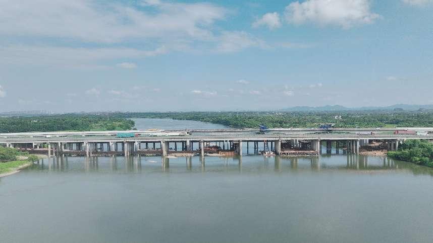 据了解,胡家榨信江大桥全长918米,主桥长250米,设计为变截面单箱三室三向预应力混凝土连续刚构。该桥跨越信江400米江面,施工期间面临汛期水位高、流速快、水流量大等挑战,是全线的重难点控制工程项目。