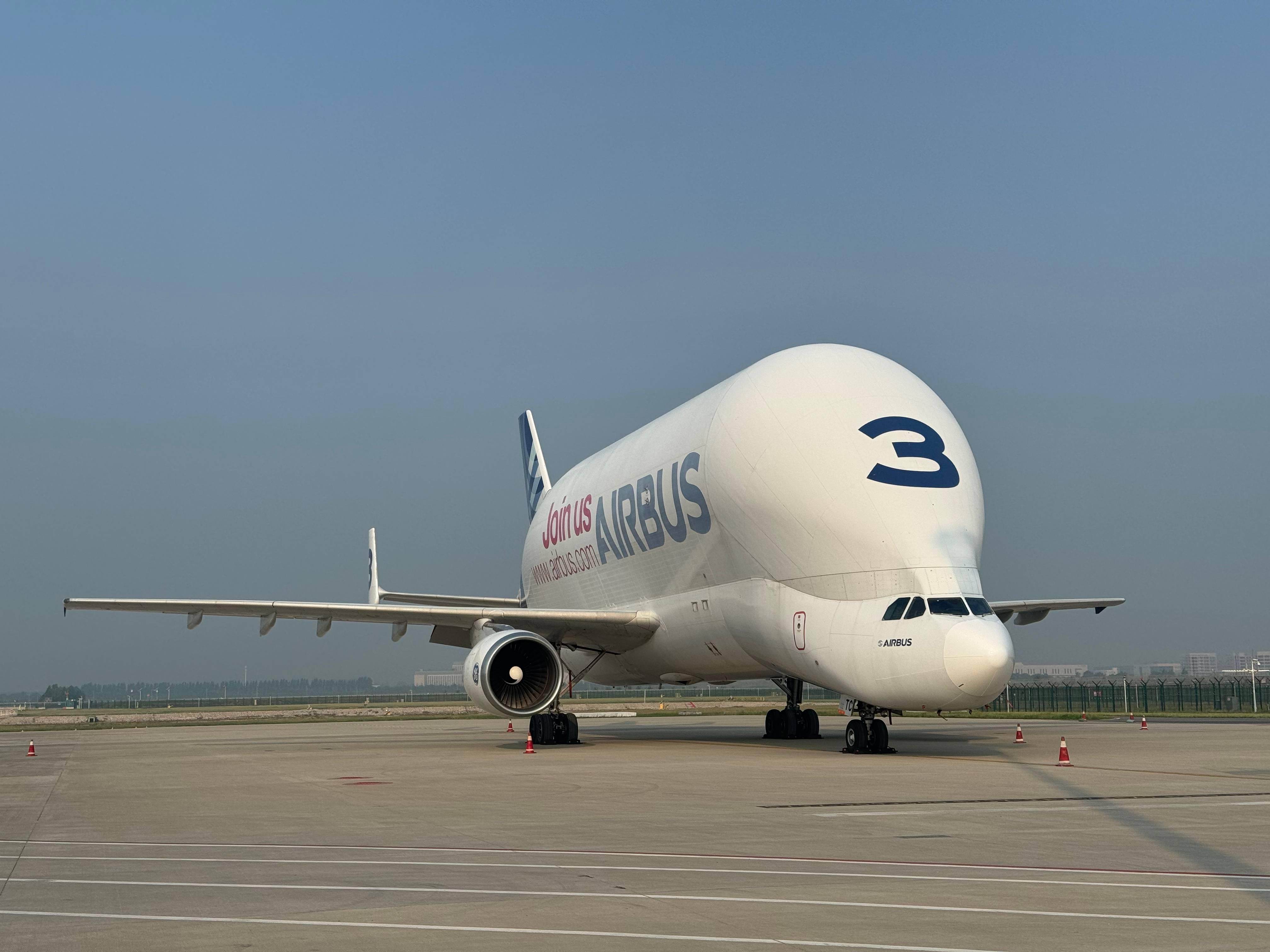 全称为空中客车“大白鲸”运输机,全球仅有五架,由于独特的造型与鲸豚相似,因此获得了“大白鲸”这个昵称,常用来运输飞机大型组件等超大尺寸货物。