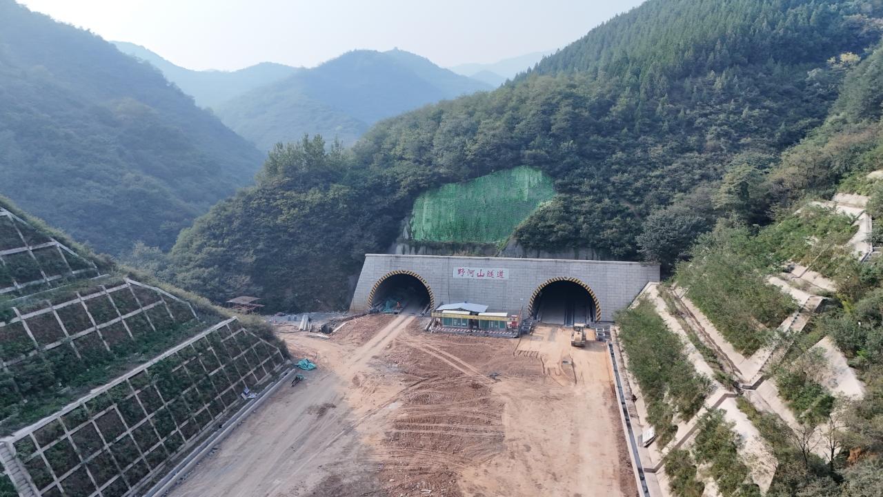野河山隧道设计为分离式双线特长隧道,建设标准双向四车道,全长8130米,是全线的控制性工程,也是全线的重难点工程。隧道穿越安舒庄和野河山两大省级自然保护区,保护区内有花豹、林麝、金雕和黑鹳等国家保护动物。项目建设始终践行绿水青山就是金山银山理念,为大型施工机械安装消音降噪设备,在重点区域加装检测仪,设置隔音屏障,并采用弱爆破技术减少震动,最大程度降低对野生动物和自然环境的影响。