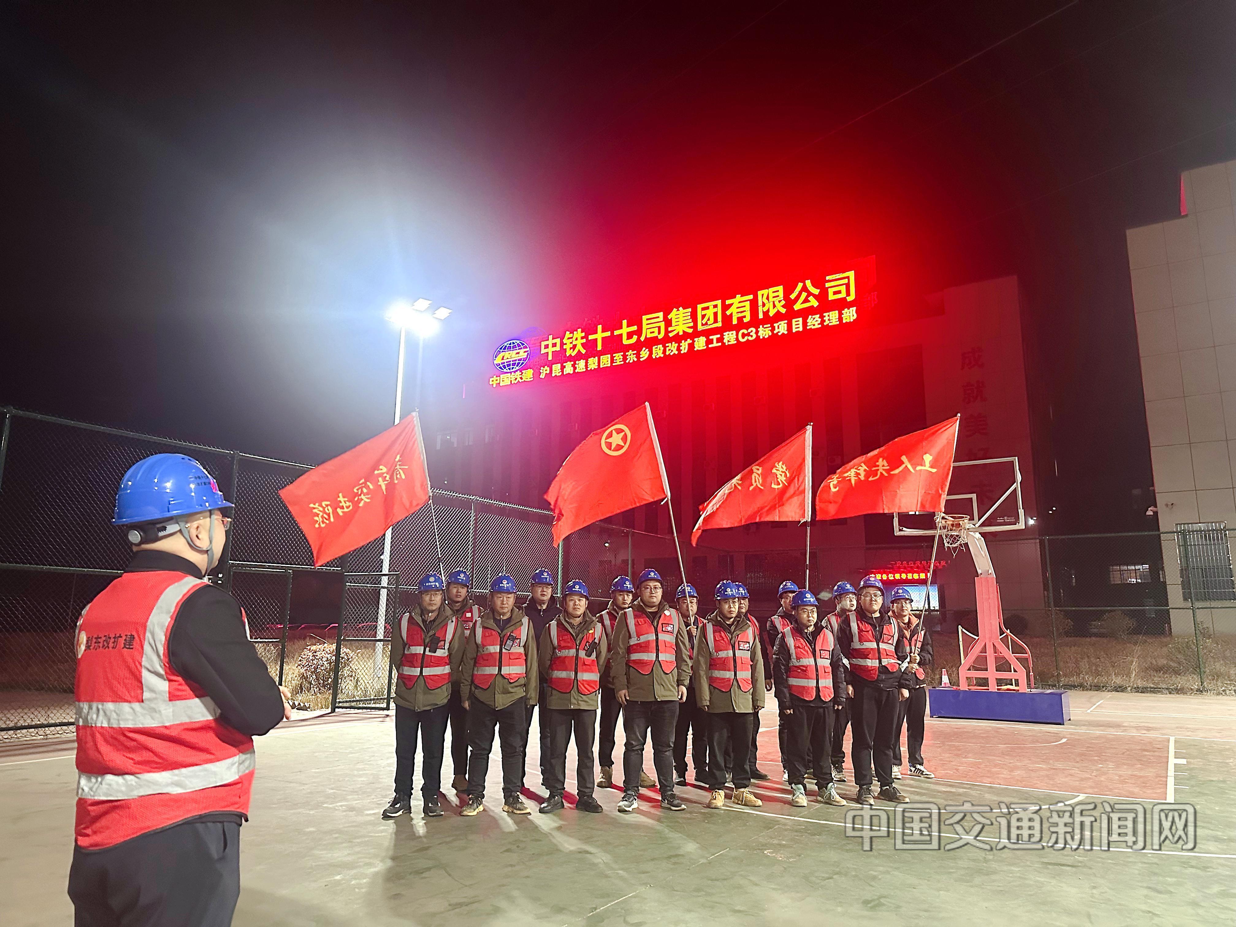 此次拆除的桥梁为项目全线最后三座待拆支线上跨桥及匝道桥,其应力应变受力模式复杂,且经过多年大负荷车辆通行,刚度、强度、稳定性都有不同程度下降,拆除时有一定的不可预见因素,安全风险大,并且需在道路封闭24小时内完成全部拆除工作恢复交通,时间紧、任务重。为确保拆除工作的顺利进行,拆桥前项目部数次研讨优化施工方案,多次召开专题会议对拆桥工作进行安排部署、技术交底、桌面推演,合理配置施工资源,投入满足要求的施工机具,选派经验丰富的管理人员、专职安全员、专业知识过硬的技术人员和专业化施工水平高的施工队伍,确保满足施工的安全、质量和进度要求。为及时缓解高速通行压力,项目部实行“白天抓紧干,夜晚接着干,24小时轮着转”原则,多方联动,撤桥保通,施工全过程采取封闭围挡作业,同时做好防污降尘工作。其中,枢纽C匝道桥为现浇箱梁结构,拆除难度高且用时较长,为确保拆除工作安全、环保、高效推进,项目充分发挥党员、团员先锋模范作用,组建了桥梁拆除党员先锋队、青年突击队,在急难险重任务中扛起责任、冲锋在前,让党旗团旗高高飘扬在一线,为顺利完成拆桥任务提供了坚实的组织保证。