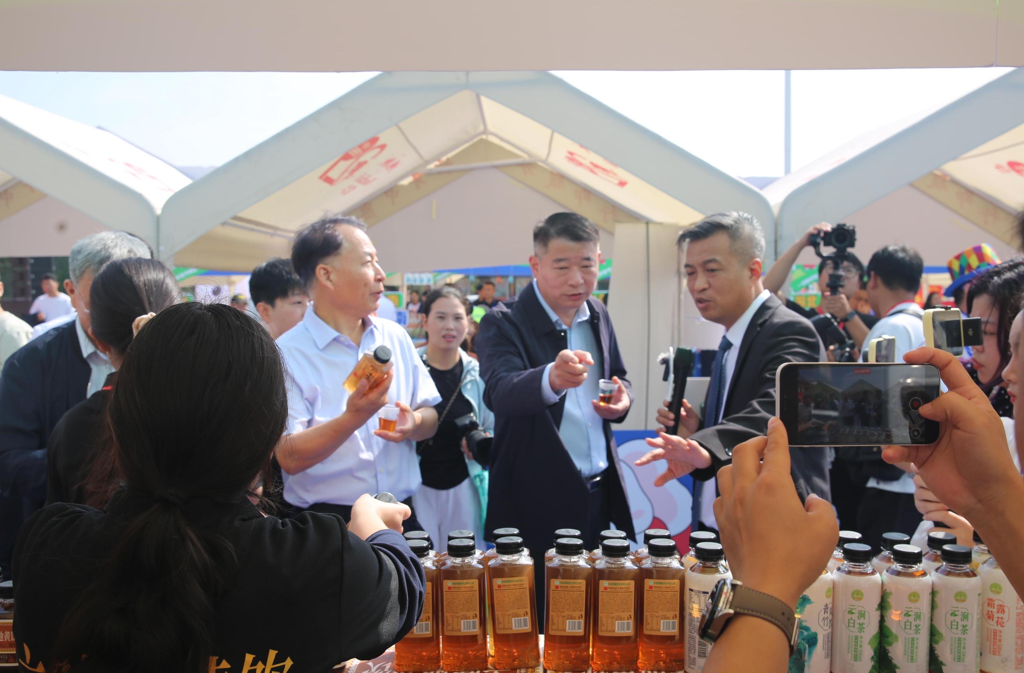 启幕仪式现场,河南交投服务区便利店品牌升级成果尤为亮眼。以融合河南地域文化与现代商业基因的“小象达达”IP形象为核心,服务区便利店不仅在视觉设计上充满“河南味”,更在商品选品上聚焦本土特色——从首次在展销会隆重推出的公司自有品牌“溢路泉”系列山泉水、“溢路泉”泡茶水,到豫东的开封花生糕和京遥胡辣汤、豫西的仰韶酒、豫南的石龙堰黄酒、豫北的山药酒和道口烧鸡、豫中的好想你枣,100余种河南名优土特产集中亮相,让过往司乘在停车休憩之余,能轻松带走“河南味道”。