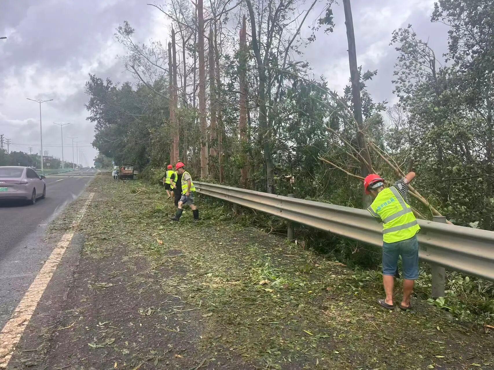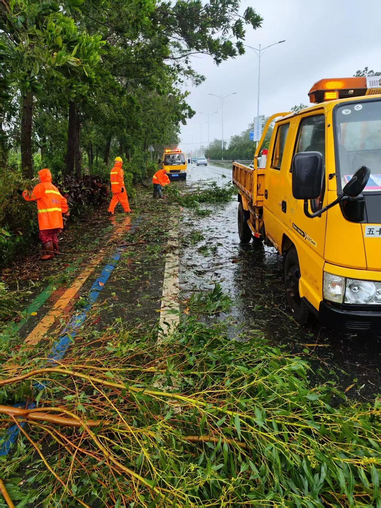 化湛、东雷、湛江机场、吴湛高速和南三岛大桥等路段投入路政、养护抢险清障人员326人(次),投入施工车辆48台及100余套(台)清理设备,连续作战12小时,累计清理倒伏树木741棵,清理路面杂物29330平方米。