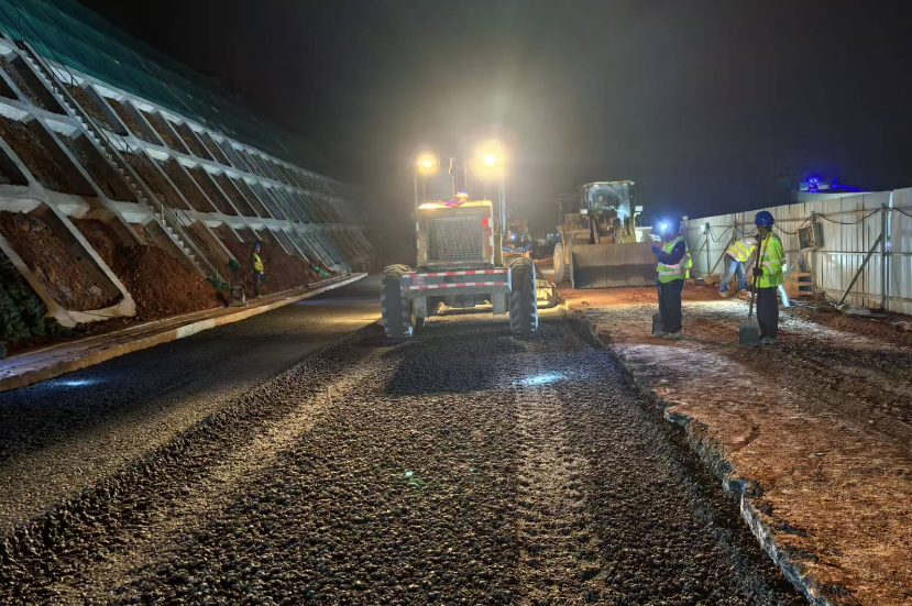 宣会高速全面转入路面施工,科技助力攻坚克难。宣会高速建设迎来重要节点:10月1日,中梁子2号隧道贯通,标志着全线隧道工程全部完工;10月4日,级配碎石底基层试验段启动铺筑,项目正式进入路面施工阶段。面对断裂带发育、围岩破碎、生态敏感等复杂条件,项目团队依托“四方联动、专家会诊”机制,强化科技赋能,实现安全、质量与环保协同推进。此次试验段铺筑为后续大规模路面施工积累了宝贵数据。