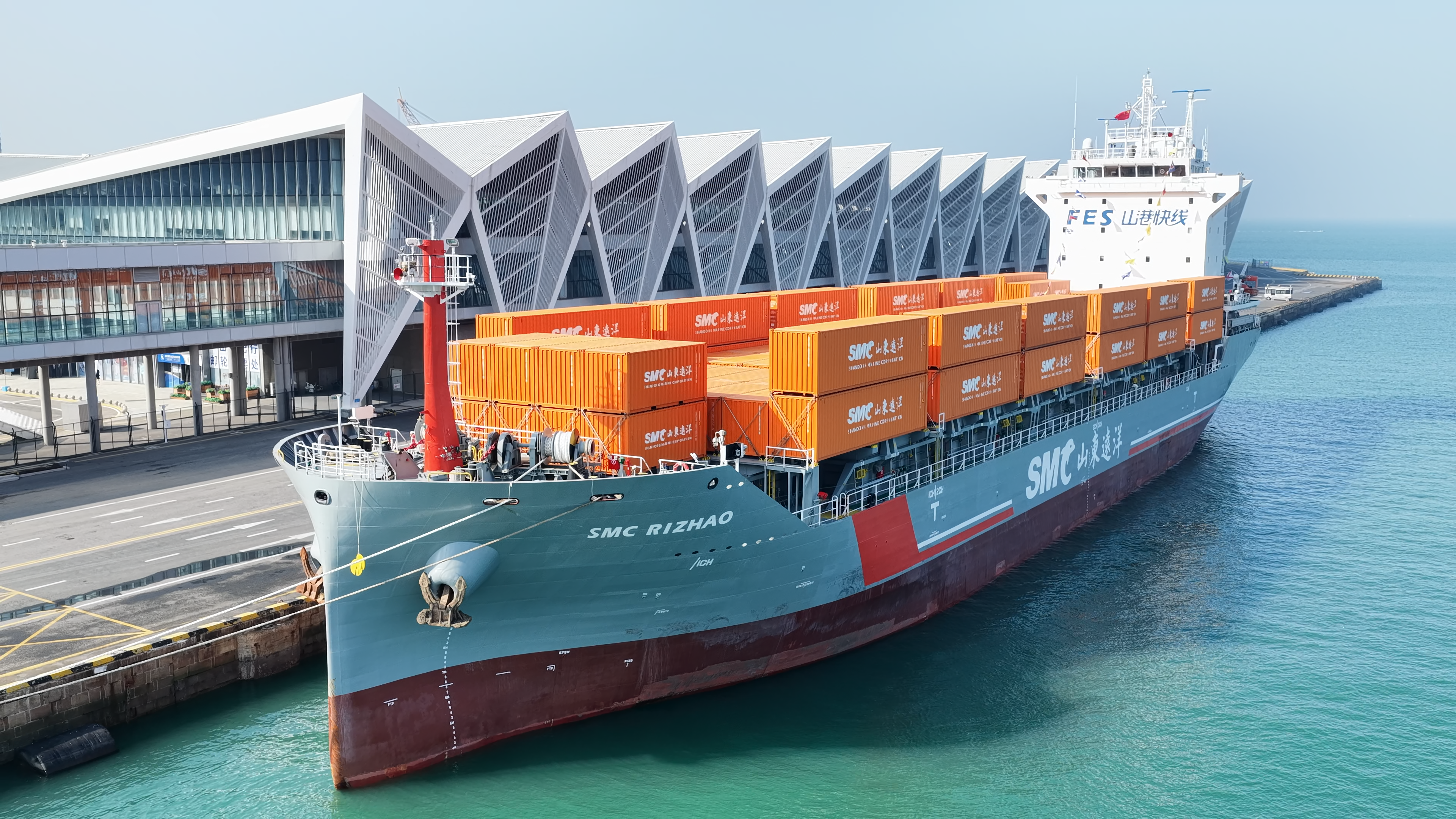 10月16日,在中韩共同推动下,韩国济州历史上首条国际集装箱定期班轮航线——“青岛—济州”集装箱航线在青岛邮轮母港首航,将实现青岛至济州的直达连接。这是落实山东省高水平对外开放战略的务实举措,将搭建起以现代航运连接中韩经贸与人文的新桥梁。