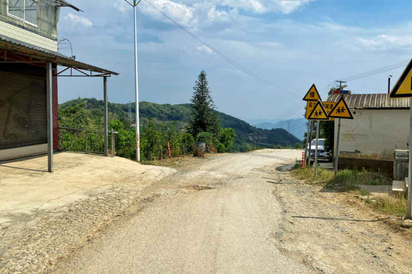 接养时,过渡城区路段,刚开始还好,虽然路面不宽,弯道也多,至少还比较平整。翻越五老山国家森林公园门口就不一样了,多处路段路面严重破损,形成大量坑塘,沿线排水多为土沟,涵洞淤阻严重,路基排水功能基本丧失。要不是路面上还残存着部分柏油路面,第一次走的人还以为这是一条砂石路,路两边的树木、房屋都蒙着一层厚厚的灰尘。从丙兔村到牌坊村,70公里路程,开车需花近3小时的时间。