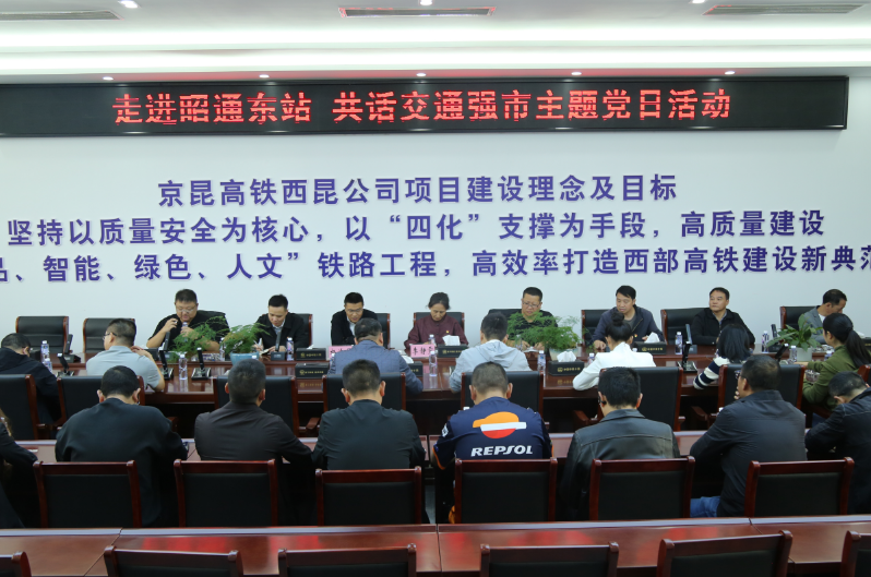 10月16日上午,云南省昭通市委办机关第一党支部、市交通运输局机关第一、二、三、四党支部、京昆高铁西昆公司昭通指挥部党支部、昭通高速第一党支部、航旅集团党支部等8个党支部50余名党员,走进渝昆高铁昭通东站工区,开展“走进昭通东站 共话交通强市”主题党日活动。