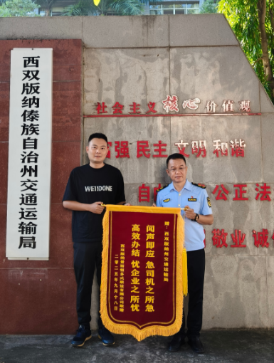 10月31日,西双版纳景裕恒多式联运公司负责人专程来到西双版纳州交通运输局,送上写有“闻声即应 急司机之所急,高效办结 忧司机之所忧”的锦旗。企业负责人激动地表示:“交通部门主动上门服务,用最短时间解决了我们的燃眉之急。这种‘未诉先办’的服务让我们真切感受到了优质的营商环境,也坚定了我们在这里继续投资发展的信心。”