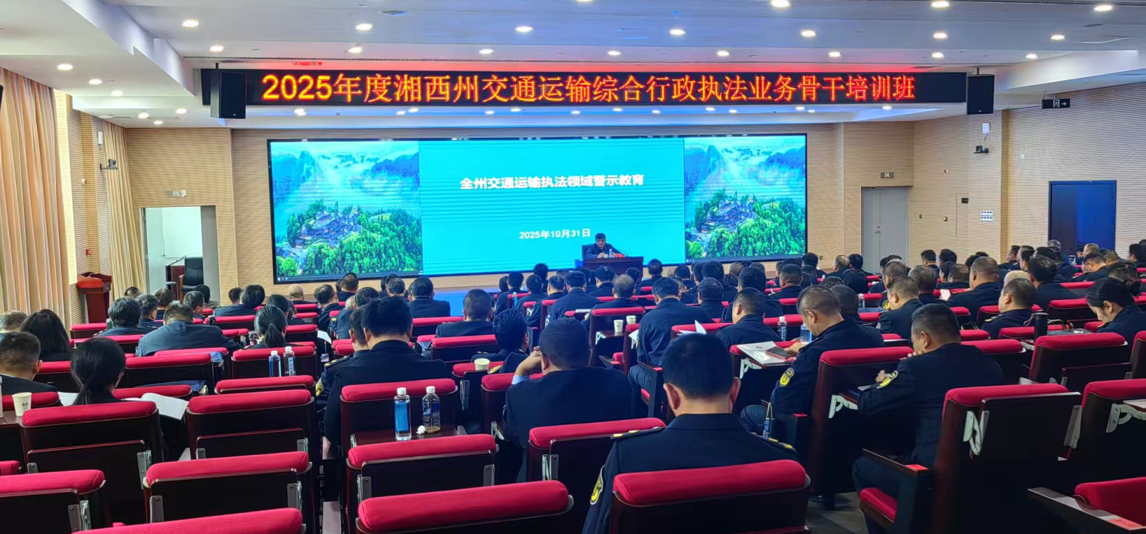近日,2025年度湘西土家族苗族自治州交通运输综合行政执法业务骨干培训班在湖南省花垣县十八洞党校开班。全州交通运输系统200余名执法一线骨干齐聚一堂,围绕政策法规、执法实务与队伍建设开展为期4天的系统培训,着力提升交通运输执法专业化、规范化水平。