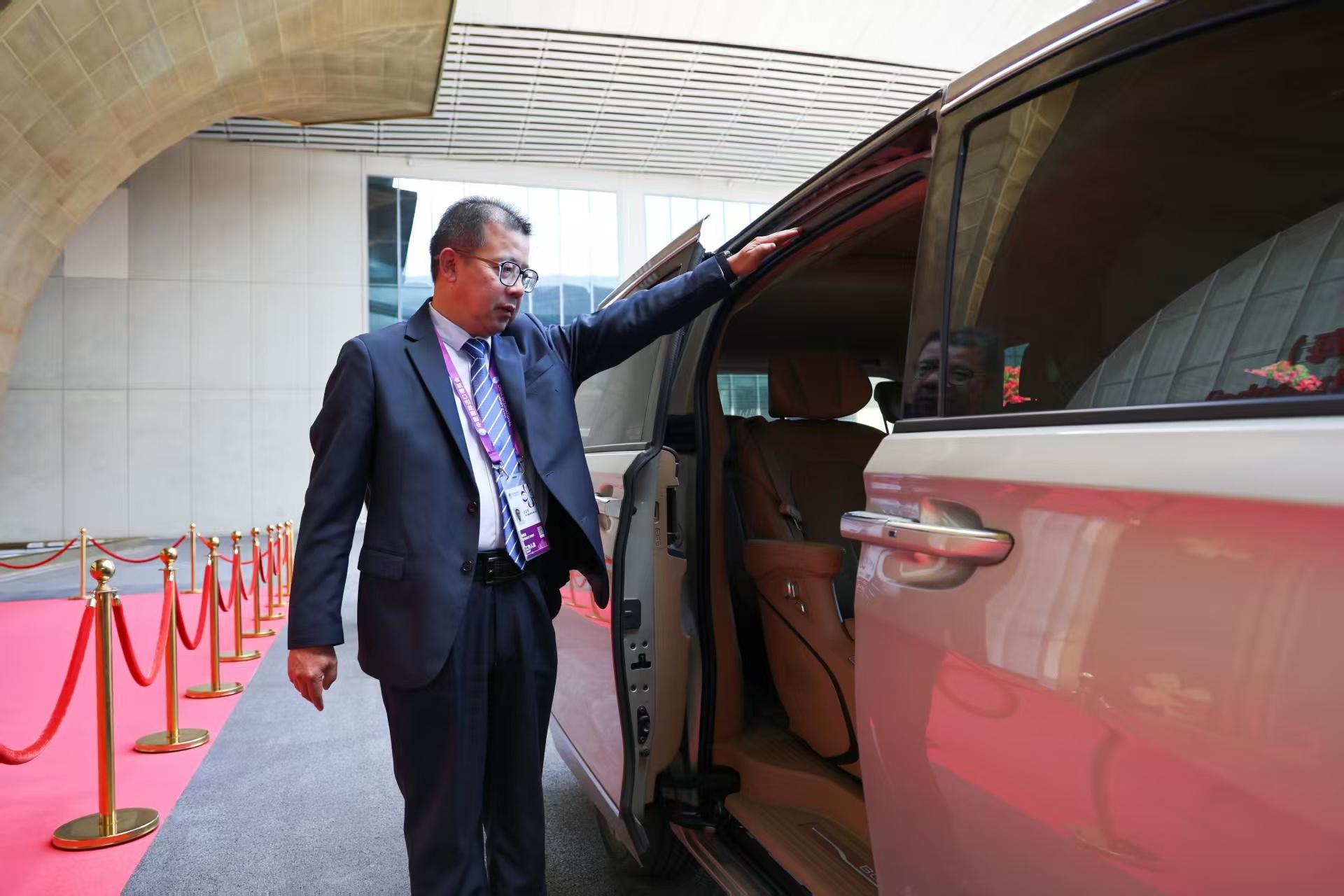 “今天太堵了,从洲际酒店到铂瑞酒店,1.1公里的路程,导航显示单程要40分钟。”久通租赁驾驶员陈浩向同事求助。“从8号门进来,穿地库到场馆东侧,走会卓路,大概20分钟。”已经连续服务八届进博会的汪卫东从容回答,“每年场馆内交通情况有所不同,提前踏线是保证高效服务的必修课。”他每年踏线时都提前做足功课,所以对国家会展中心地上地下的“快速通道”熟门熟路。
