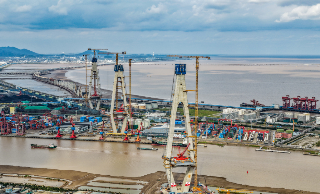 2021年,宁波舟山港主通道项目建成通车,使舟山大陆连岛工程成为中国最长的连岛高速公路和规模最大的跨海桥梁群。其舟岱大桥是采用大直径超长钢管桩基础规模最大的跨海桥梁,北通航孔桥则是国内外最大跨径的节段拼装钢-混连续刚构跨海桥。2024年通车的杭甬复线宁波一期,其控制性工程滨海互通更是“亚洲最大海上互通”。