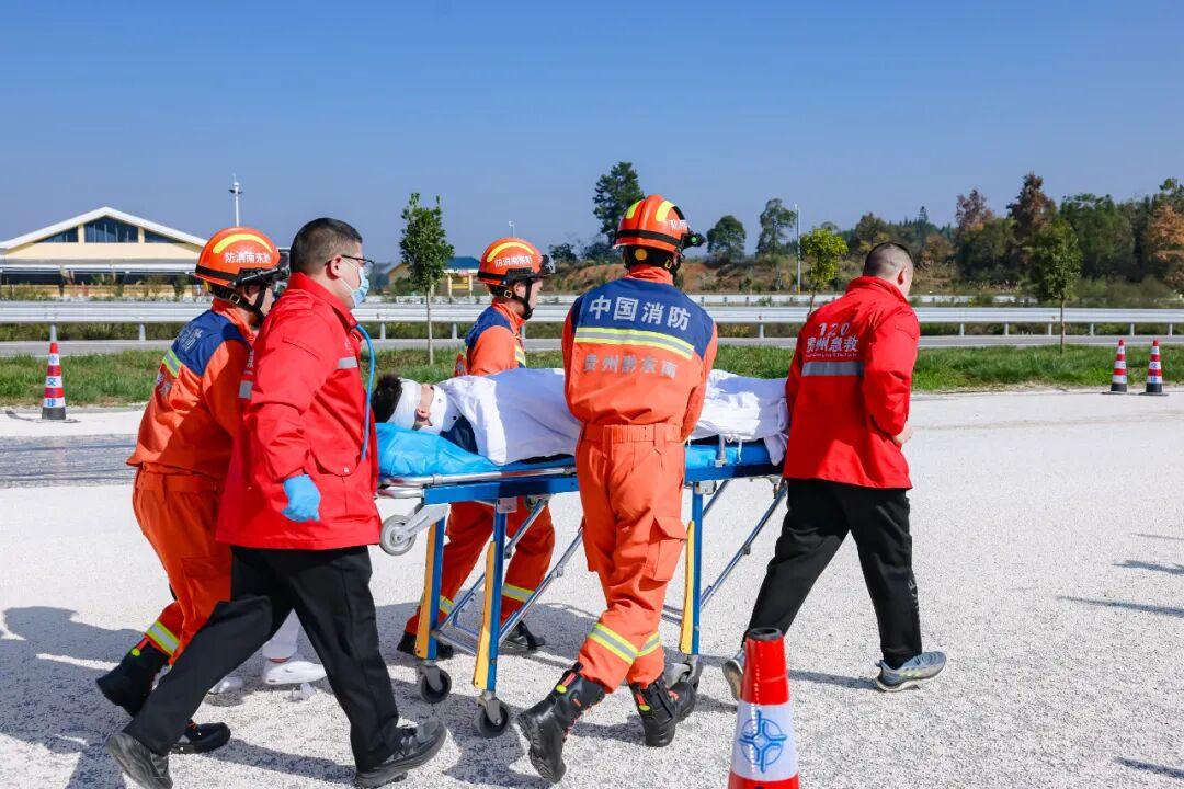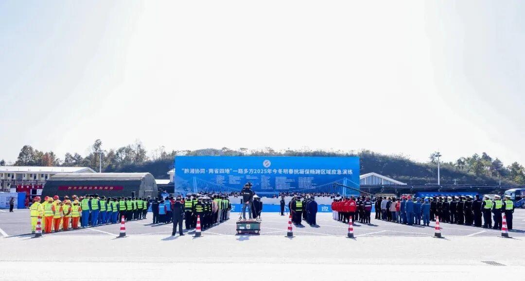 11月14日,由贵州省交通运输厅、湖南省交通运输厅联合两省应急管理、公安、卫生健康委、气象局等多部门及黔东南州人民政府共同主办,贵州省交通运输综合行政执法监督局、贵州交通信息与应急指挥中心等单位承办,湘黔两地相关执法、营运、应急救援等40余家单位和部门协同参与的“黔湘协同・两省四地”一路多方2025年今冬明春抗凝保畅跨区域应急演练在贵州省黔东南州岑巩县S32玉新高速天马服务区成功举办。贵州省交通运输厅党委委员、副厅长陈健蕾出席活动并作点评讲话,黔东南州人民政府党组成员、副州长陆再义为演练致辞,贵州省交通运输综合行政执法监督局党委副书记、局长方延旭作动员讲话。