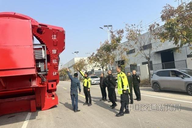 为深入推进江苏省交通运输系统“安康杯”竞赛活动,强化安全生产根基,近日,江苏省交通综合执法局连徐支队第三大队联合徐州交通执法支队路政大队(大件办)、铜山区交通执法大队,组建“雷锋车”法律服务队,响应徐州力霸工程汽车有限公司“邀约式”安全生产检查需求,上门开展专项帮扶,为企业大件运输安全保驾护航。