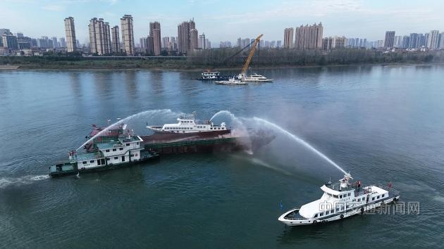 演练现场警报骤响,各参演单位迅速响应、高效联动。救援船只快速集结至指定水域,身着专业装备的救援人员动作利落,或搭乘冲锋舟逼近“遇险”船舶,或携带救援设备纵身入水,精准完成人员打捞与转移;消防船只喷射高压水柱,稳稳压制船舶火情;溢油回收船同步作业,围油栏快速铺开,将泄漏油污牢牢控制在限定区域,有效避免污染扩散。从险情接报、指令传达,到各环节处置、被困人员安全转移,全流程衔接顺畅、操作规范,充分展现了湖南水上应急救援队伍的专业素养与过硬本领。