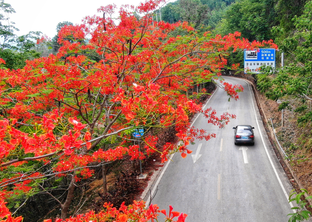 近年来,西双版纳公路局因地制宜选种植蜘蛛兰、火焰木等本地苗木和观赏性花卉,对公路沿线两侧进行绿化提升改造。对备受青睐的旅居地G213线K3890+400右侧二台坡服务区进行优化提质,打造人民群众满意的绿美服务区、最美旅居地。