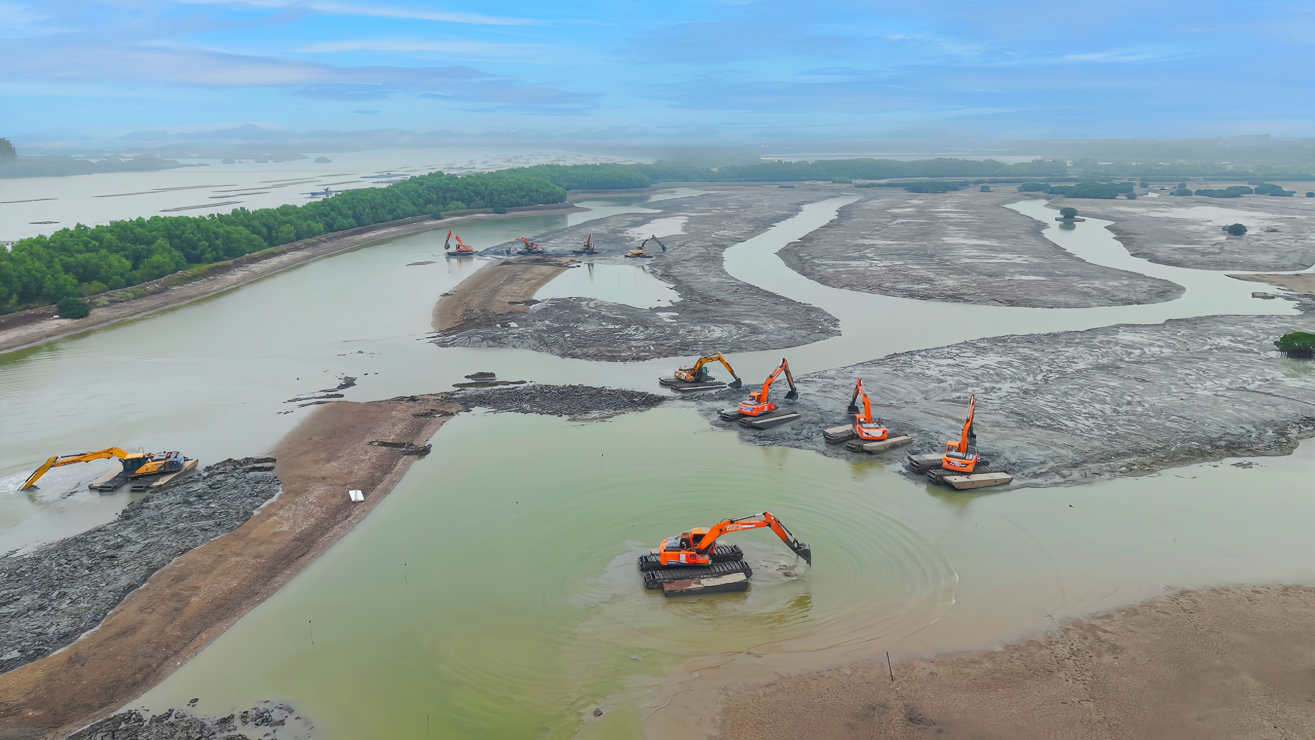 2024年9月以来,中交广航局建设者将红树林修复作为响应“海洋强国”“生态文明”战略的生动实践,以全国首个大规模红树林“种养耦合”生态修复项目为抓手,总规划种植红树林546公顷,同步实施3.02千米海堤生态化改造,为湛江“红树林之城”建设筑牢根基。