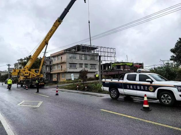 此前,隆回县部分公路沿线违法搭建、杂物乱堆、违规种植等问题较为突出,既破坏了路容路貌的整洁美观,更埋下了交通安全隐患,严重影响群众出行体验。自今年5月起,该县精准靶向施策,聚焦突出问题,在全县主要国省干线公路及重要县道全域铺开路域环境集中整治行动。该县提前召开专题会议统筹部署,制定专项整改方案,组建以县交通运输局为牵头单位,县交通运输综合行政执法大队、县公路建养中心等多部门协同参与的专项整治队伍,明确以管控“四违”现象、拆除违法非公路标志为核心任务,全力推进“八无”整治目标落地——实现交通标志前后500米无广告、无违法建筑物及地面构筑物、无违法搭接道口与占地挖掘公路、无违法涉路设施、无违法非公路标志、无非法种植物、无摆摊设点与打谷晒场、无公路用地范围内堆积物,全面规范公路沿线秩序。