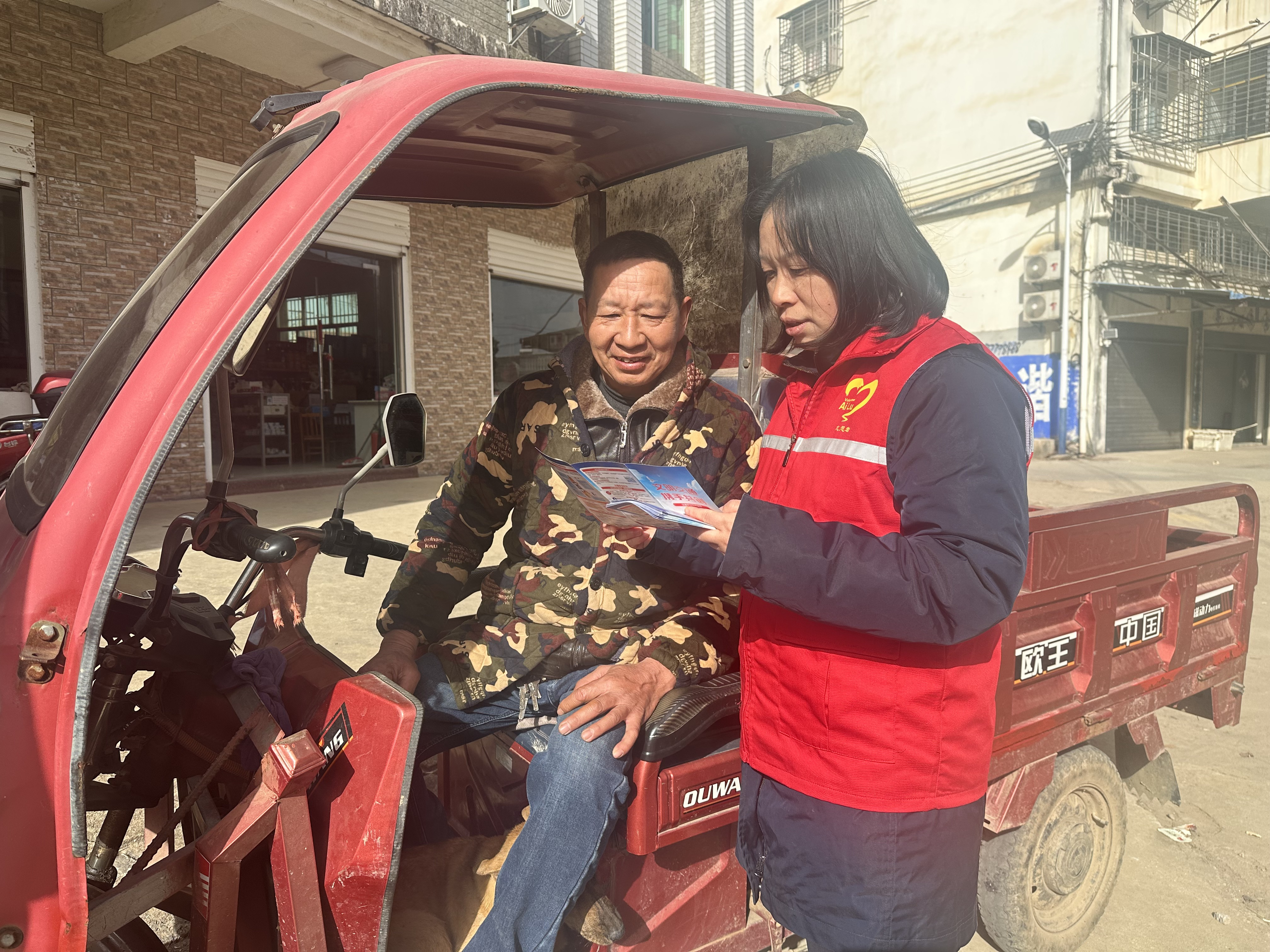 志愿者还走进周边村庄,向村民送上宣传手册,并针对农村摩托车出行普遍的情况,善意提醒大家规范佩戴头盔,细致讲解“一盔一带”对保护生命安全的重要性,倡导养成安全出行好习惯。