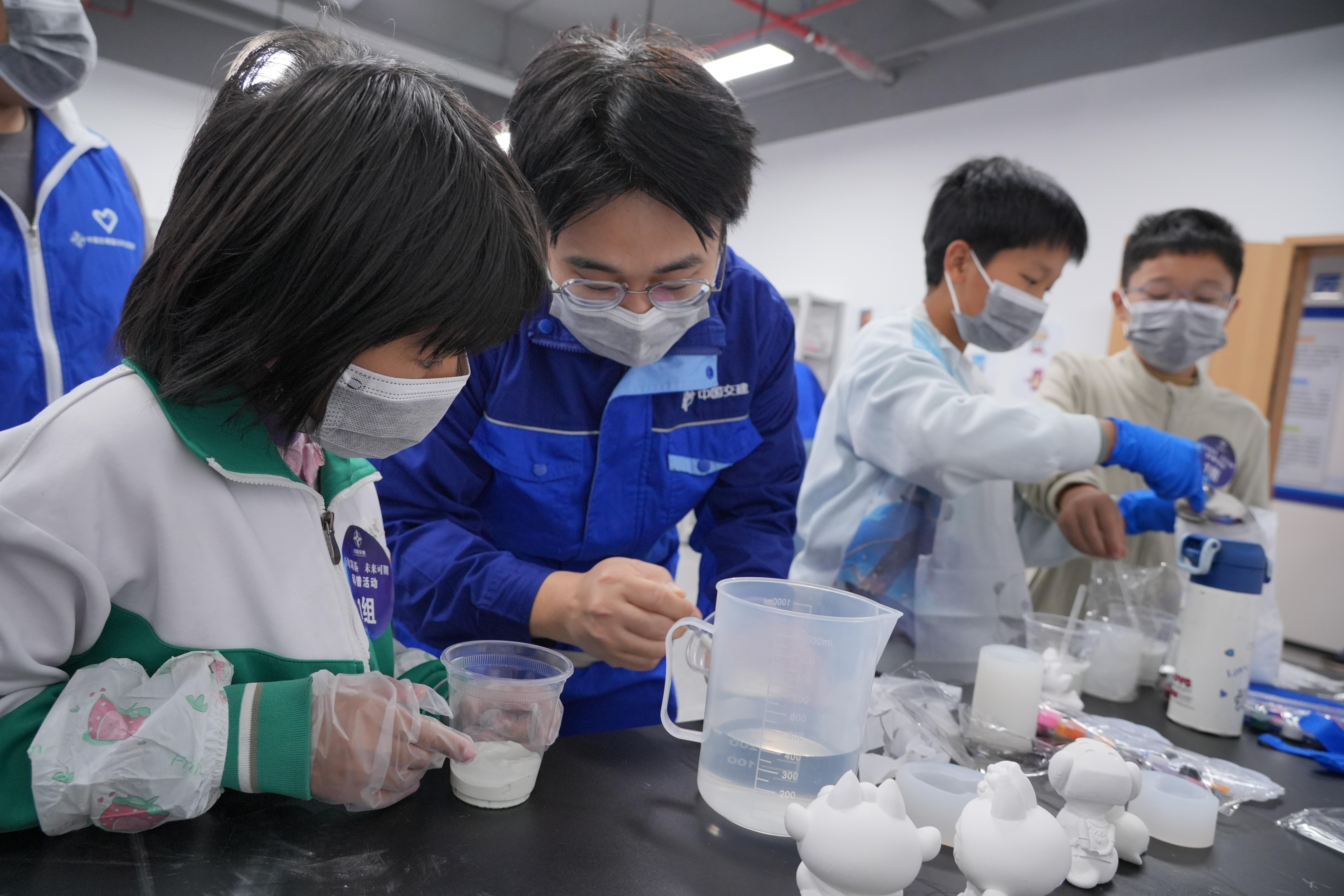 动手实践环节按年龄分为五个小组,并为初高中学生专设独立实践区,由专业工程师全程指导。低年级学生亲手调配白水泥制作模型,感受建筑材料的可塑性;高年级学生则参与混凝土试块回弹强度检测与计算等任务,在“做中学”中体验工程技术的严谨与趣味。“原来水泥不只是灰色的‘石头’,还能像橡皮泥一样变形!”一名小学生在实践中兴奋地说道。