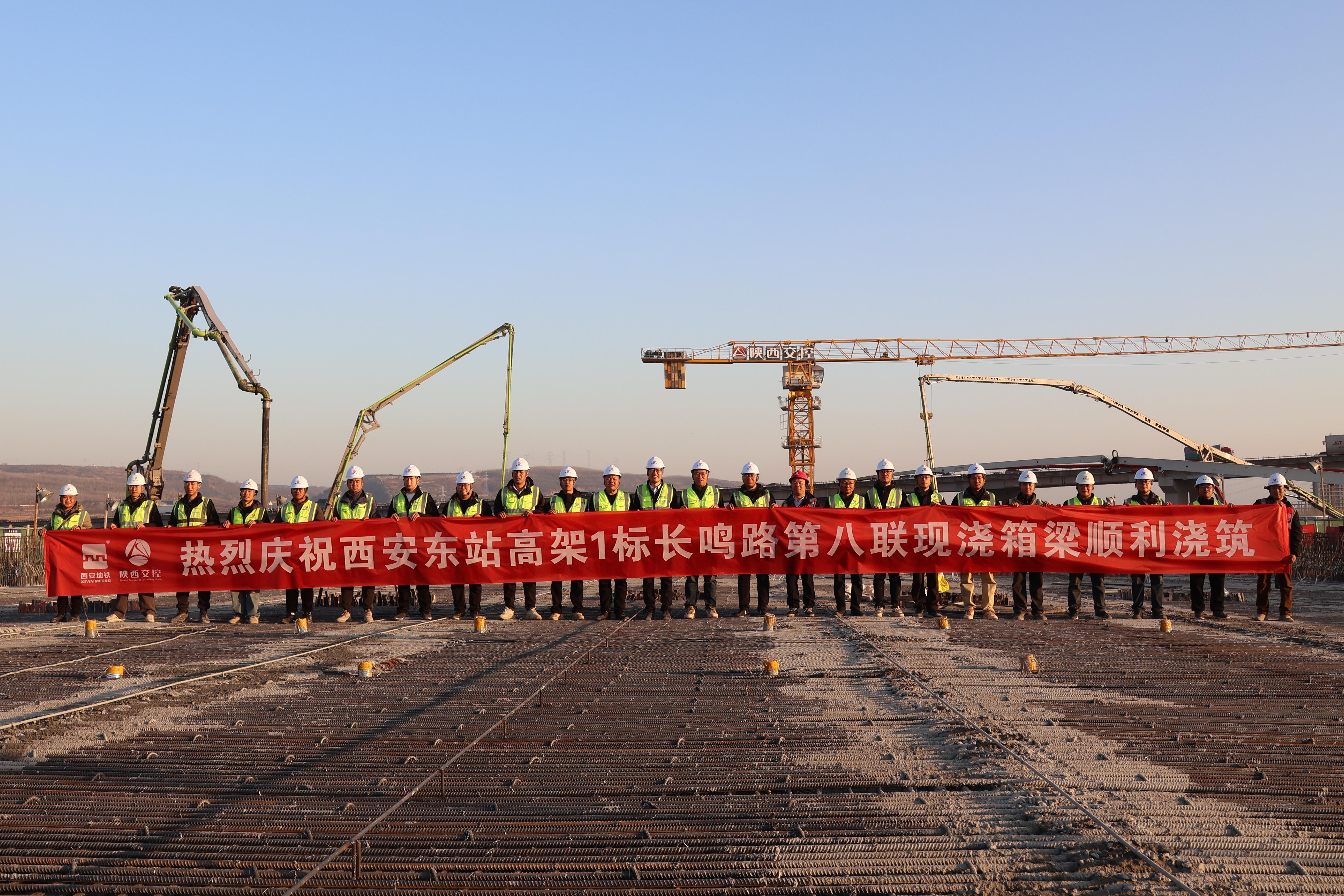12月8日,历经47小时连续施工,由西安市轨道集团下属西安高铁东城建设发展有限公司负责实施,陕西交控市政路桥集团高速机械化工程有限公司承建的西安东站高架快速路系统及节点立交工程长鸣路-南绕城高速立交长鸣路高架桥第八联现浇箱梁顺利完成浇筑,标志着该段高架桥上部结构施工取得重大进展,为后续桥面及附属工程施工打下了坚实基础。这也是目前国内一次性连续浇筑方量最大的大跨径变截面预应力现浇连续箱梁。