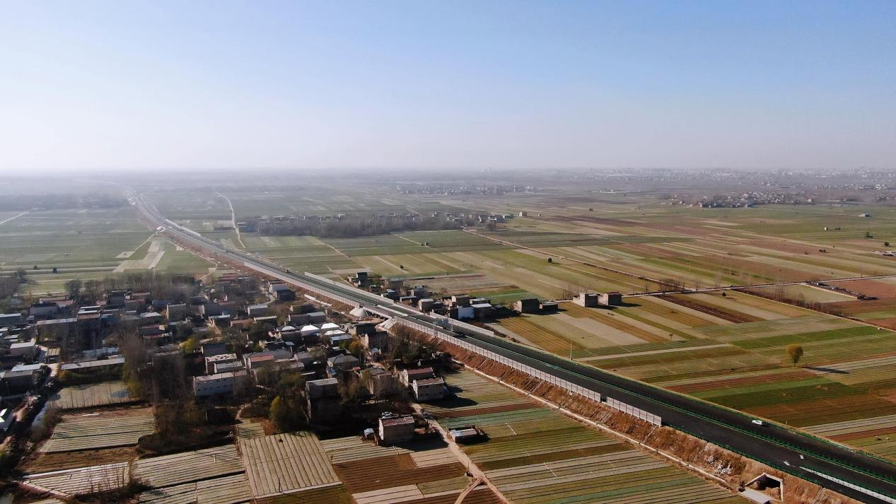 据中交四航局河南兰太高速公路二标项目施工现场负责人余建生介绍,该项目途经商丘市民权县及开封市杞县,主线线路总长31.2公里,设计时速120公里,全线采用双向4车道高速公路技术标准,设有桥梁52座、涵洞通道87座、互通3座、服务区1个。
