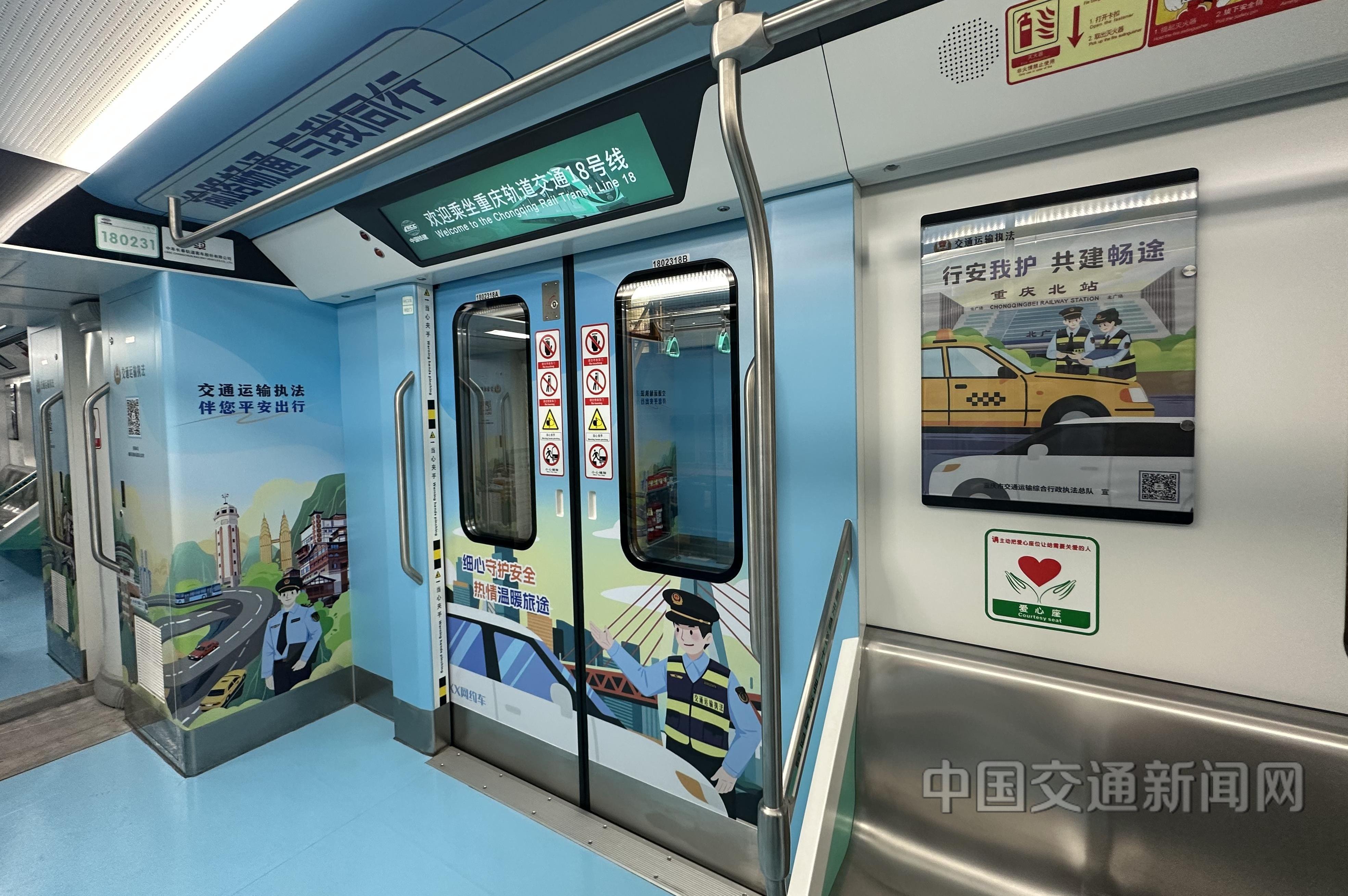 12月9日,重庆首列“交通执法·行安我护”主题宣传列车在轨道交通18号线投运。该主题列车由重庆市交通运输综合行政执法总队与重庆轨道18号线建设运营有限公司携手打造,旨在让法治宣传“动起来”。