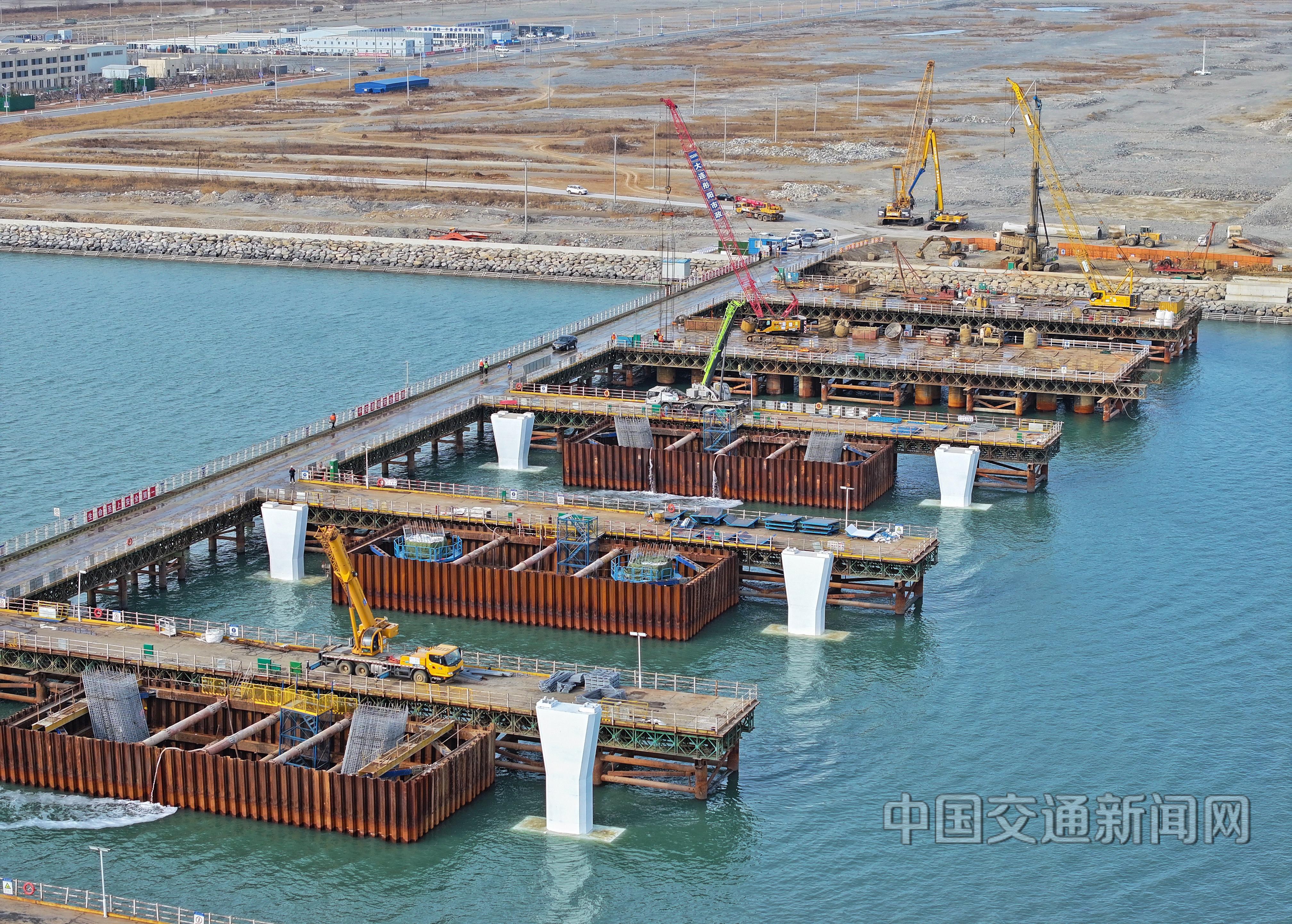 针对冬季跨海施工特殊环境和强腐蚀的海洋环境,以及昼夜温差大、混凝土养护要求高等现实难点,项目团队加强混凝土生产浇筑过程控制,强化桥梁工程耐久性管控,积极面对季节性、地域性挑战。通过组织混凝土配合比多轮试配与开裂风险评估、严格把控混凝土水胶比、采取综合蓄热法养护、增设温控设施等举措,确保关键环节管控到位。此外,建设者还为浪溅区及水位变动区的混凝土承台、墩身等结构物穿上硅烷浸渍“防腐外衣”。