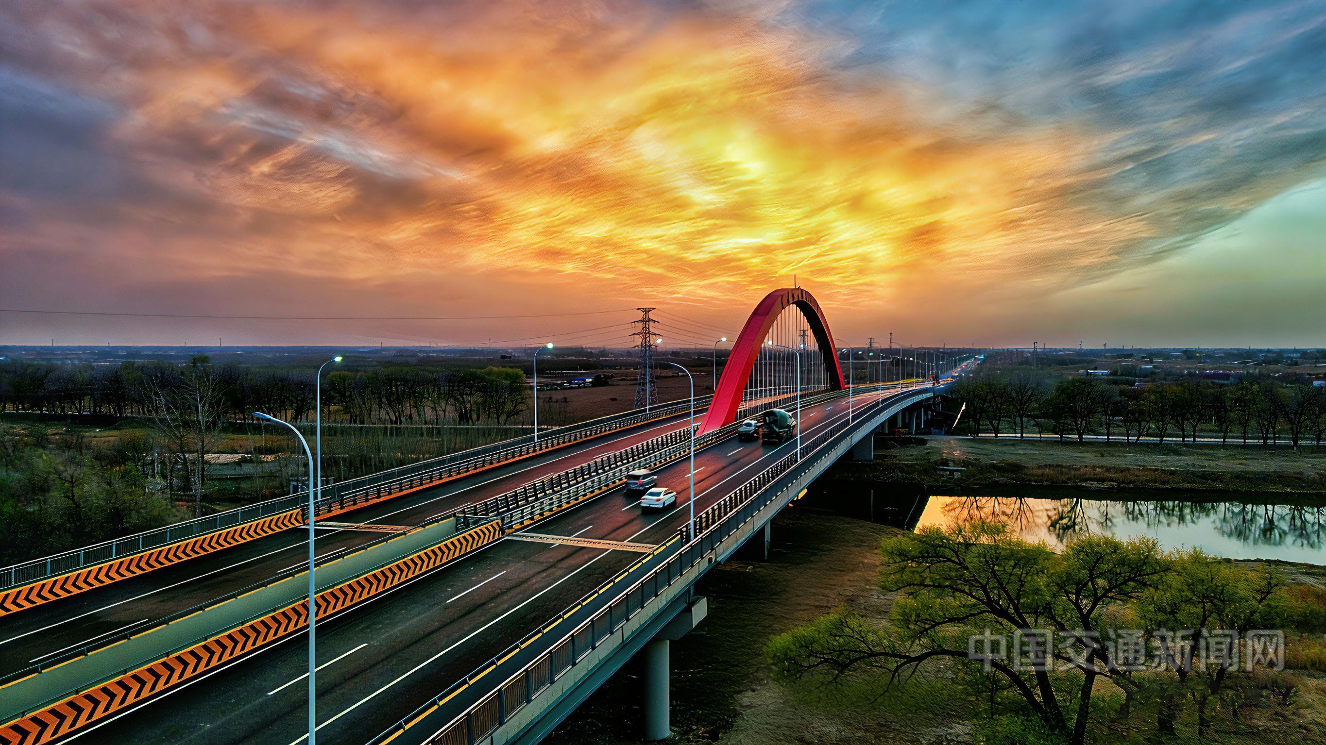 南运河大桥在落日的余晖下格外壮美,桥面上车水马龙。“以前过境车辆穿城过,主干道堵成‘停车场’,现在这条‘新动脉’不仅缓解了城区交通压力,更成为了展示城市面貌的‘新窗口’。”项目党支部副书记苗轩宁满脸自豪。