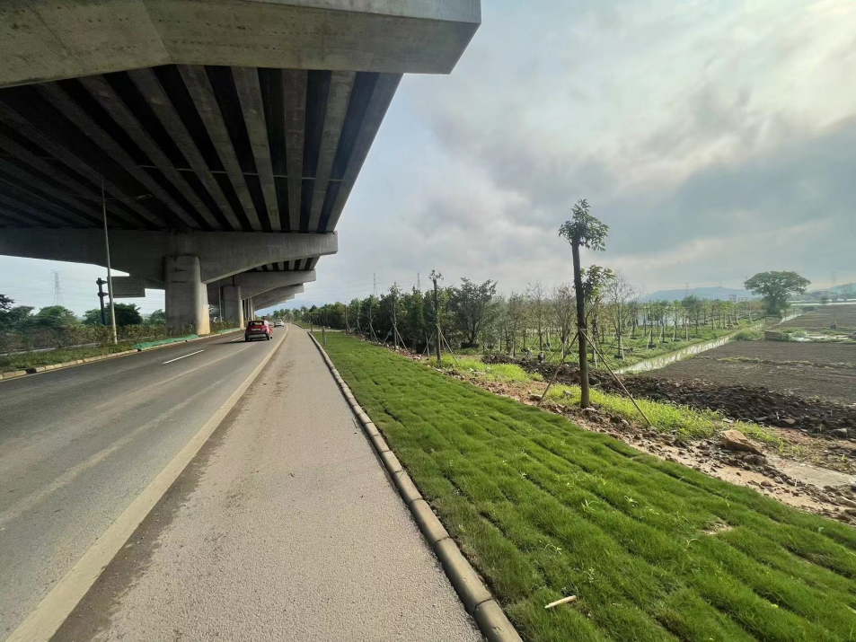在推进古神公路路域环境整治过程中,中心构建“市镇村+企业”多方协同机制,广泛动员各方力量参与:西环高速公司协助平整路肩与清理建筑垃圾;属地镇街无偿提供黄土、塘泥等材料;村居委动员村民投工投劳;中心统筹调度人员、机械设备,统一采购草皮树苗,并利用废旧沥青渣修复路肩,以最小投入实现路域环境显著提升,节约资金约420万元。