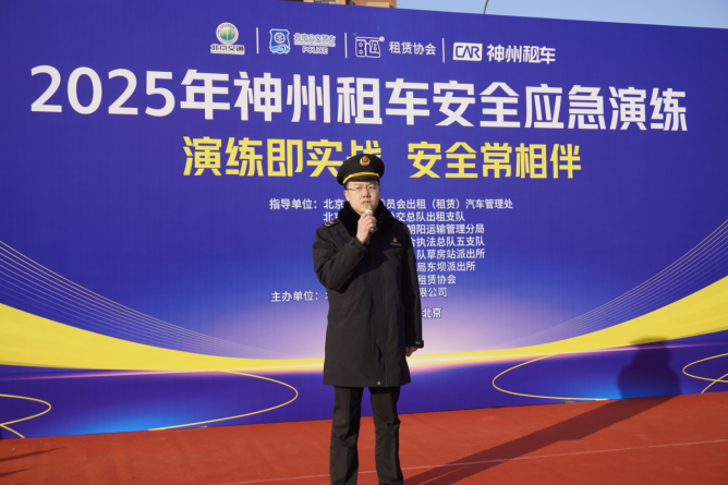 北京市公安局公交总队出租支队张副支队长对本次演练活动做总结讲话,他指出,此次神州租车应急演练,精准贴合当前汽车租赁行业的运营实际和安全风险,演练科目设置科学合理,场景模拟高度逼真,充分展现了神州租车在安全管理方面的扎实基础和应急处置能力。张副支队长强调,神州租车要始终坚守安全红线,总结经验、查漏补缺,持续强化员工安全培训和应急演练,不断提高企业安全管理水平。同时,也期待行业内更多企业能够借鉴此次演练的成功经验,共同推动汽车租赁行业安全管理工作再上新台阶。