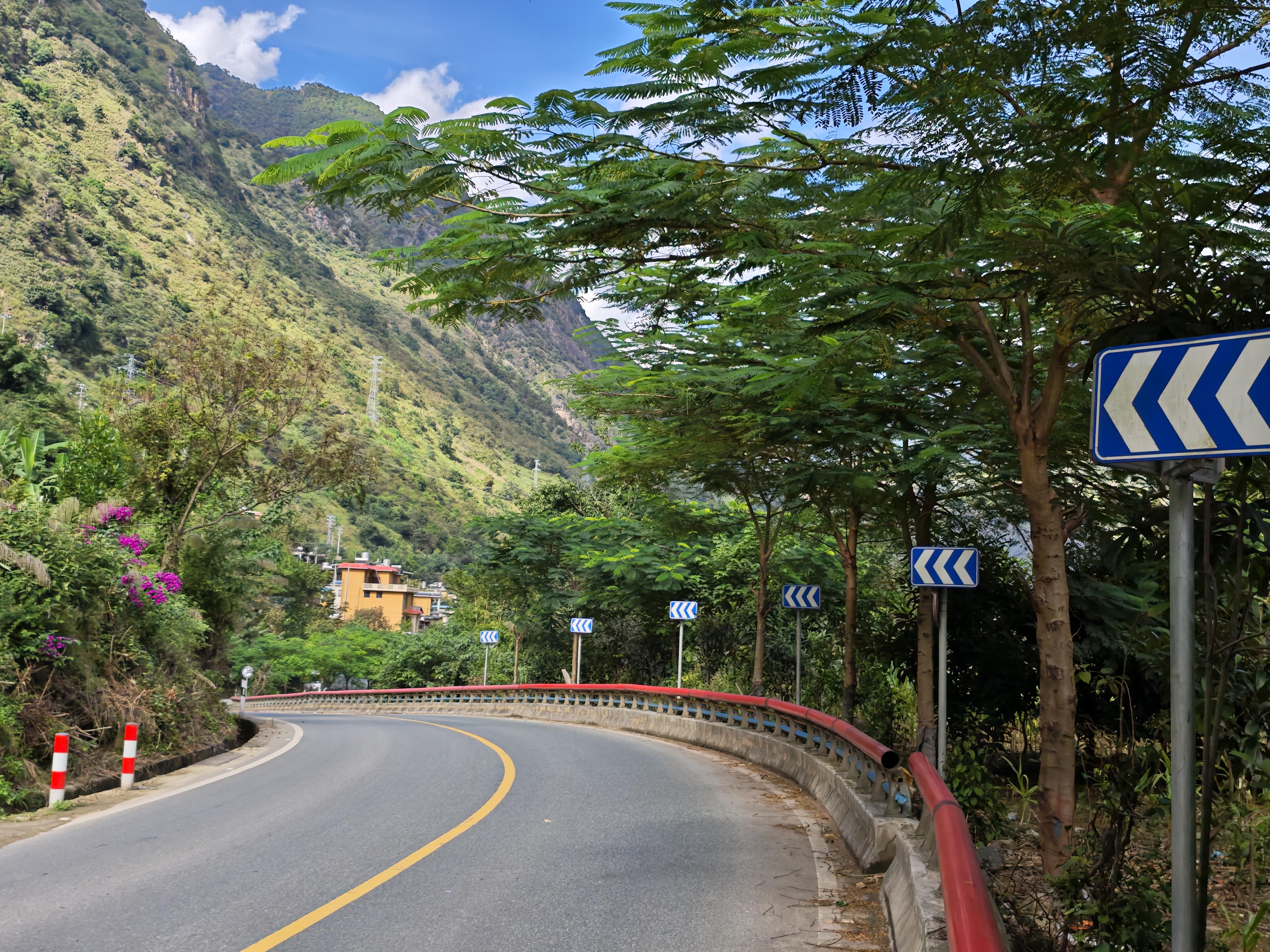 G219线怒江泸水段,一侧是怒江碧波逐浪的诗意,一侧是高黎贡山翠色如帘的清幽。泸水公路分局锚定“畅、安、舒、绿、美”核心目标,结合峡谷气候与地形特点,遵循“经济适用、乔灌结合、层次分明”原则,对沿线原有绿化带精细修剪整形、科学补植补种,在路基两侧适宜区域栽种紫薇、凤凰木、羊蹄甲等苗木2200余株,配套铺设灌溉水管,筑牢“四季有花、四季常绿”的生态基底,让公路与峡谷山水浑然一体、相映成趣。