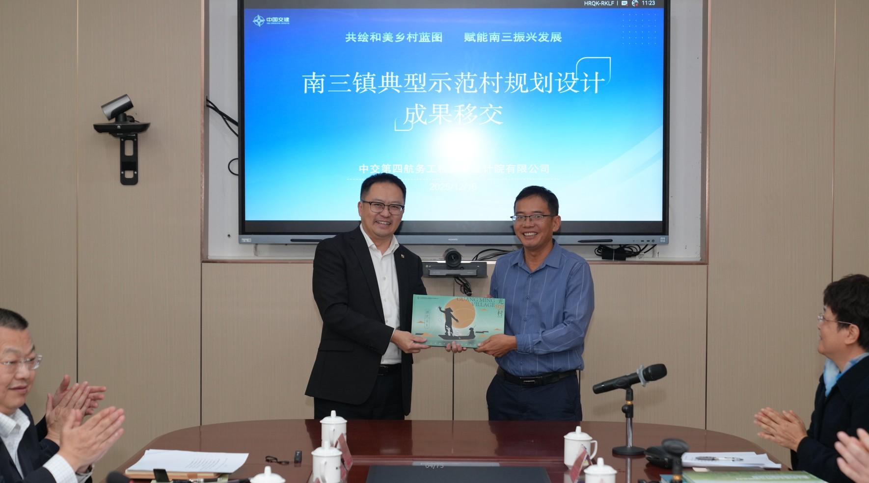 在专题座谈会上,邓磊代表中交四航院正式向南三镇移交了三个省级典型示范村的成套规划设计成果。依托中交四航院专业优势,工作队完成3个村的示范规划,2项设计作品斩获省、市乡村设计大赛奖项,为南三镇“百千万工程”注入持续动力。