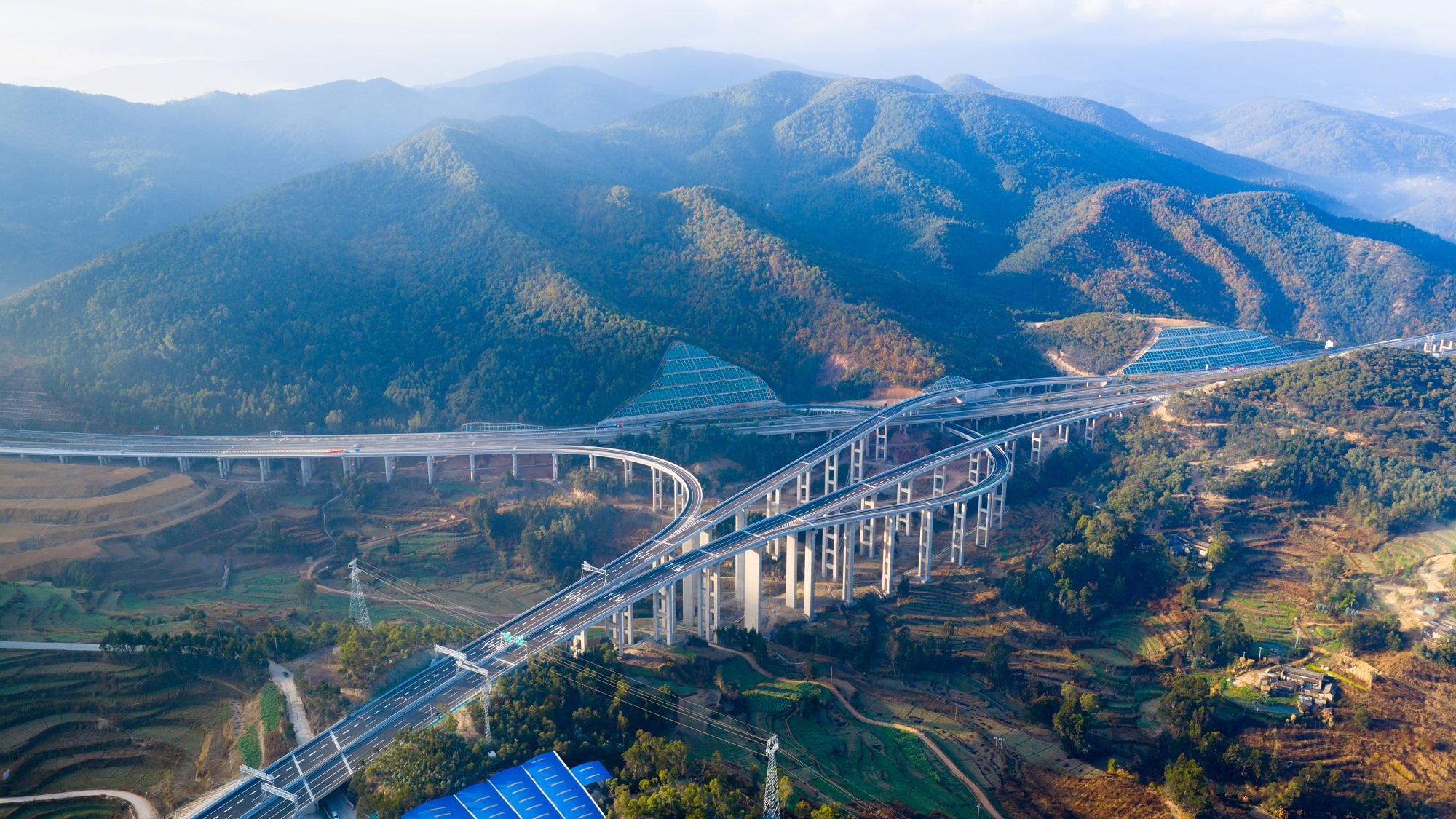 牟元高速全长仅48.5公里,却堪称一部微缩的现代工程史诗。77.16%的桥隧比,意味着车辆大部分时间都在穿越,不是翻山,而是直接刺穿山的阻隔,用桥梁串联断崖,以隧道贯通岭壑。建设者与具有腐蚀性的地质环境博弈,攻克含盐地层,确保这条“时空隧道”根基永固。建设者在滇中群山间,续写“逢山开路 遇水架桥”的史诗,用这个时代最美的语言誓言“修好路、修生态、修文化、修人心”。