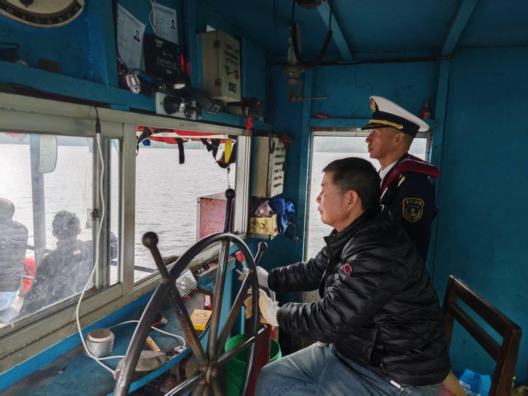 开船前,执法人员已对船舶的消防、救生、航行等设备进行了细致查验,逐一核对船舶与船员证书有效性,认真检查航行日志、开航前自查记录等文书资料,坚决防范船舶“带病”开航。航行期间,他们在驾驶舱全程监督船员操作,严禁超载和航行中使用手机等的行为。“最近客流量增加,请进一步提高船舶自查频率,密切关注天气预警,遇到恶劣天气务必果断停航。”执法人员向客运码头负责人再三嘱咐,推动安全生产主体责任落到实处。