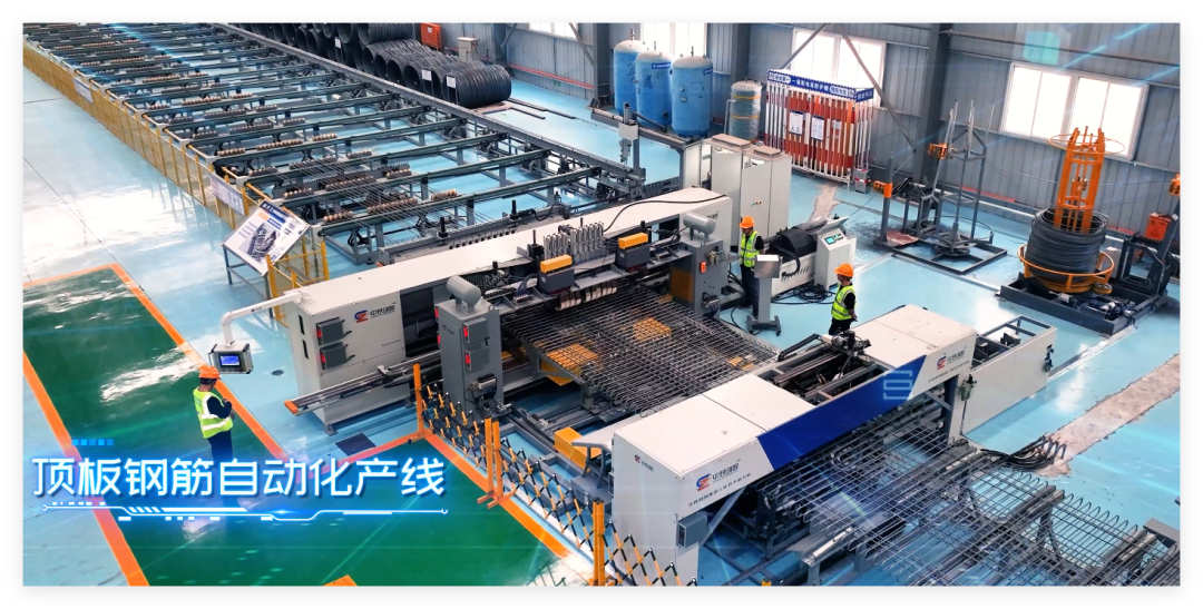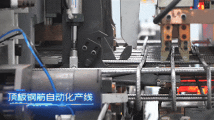 顶板钢筋自动化生产线,如同织毛衣一般,将钢筋按系统预设自动下料分布,置入箍筋后一次弯折成型,随后通过自动焊接,使箍筋与水平筋牢固连接。