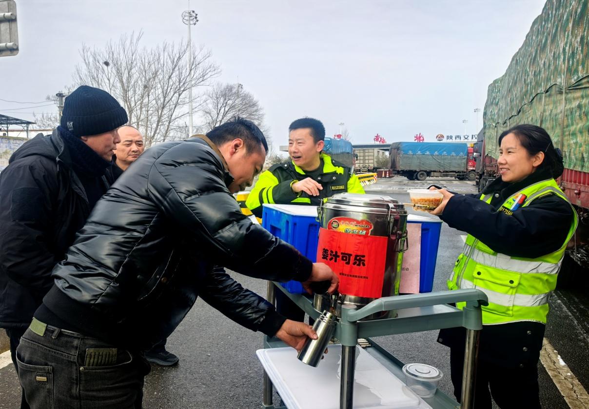 “合阳入口管制,彬州到西安正常……”陕西高速智慧出行直播间,路况主播一边解答网友们的提问,一边实时口播最新路况,实现信息同步零延迟。在沿线收费站广场,工作人员为因风雪滞留的司乘送上热水、热饭,耐心安抚焦急的情绪,同时提供简易修车工具、应急药品、充电、如厕等便民服务。
