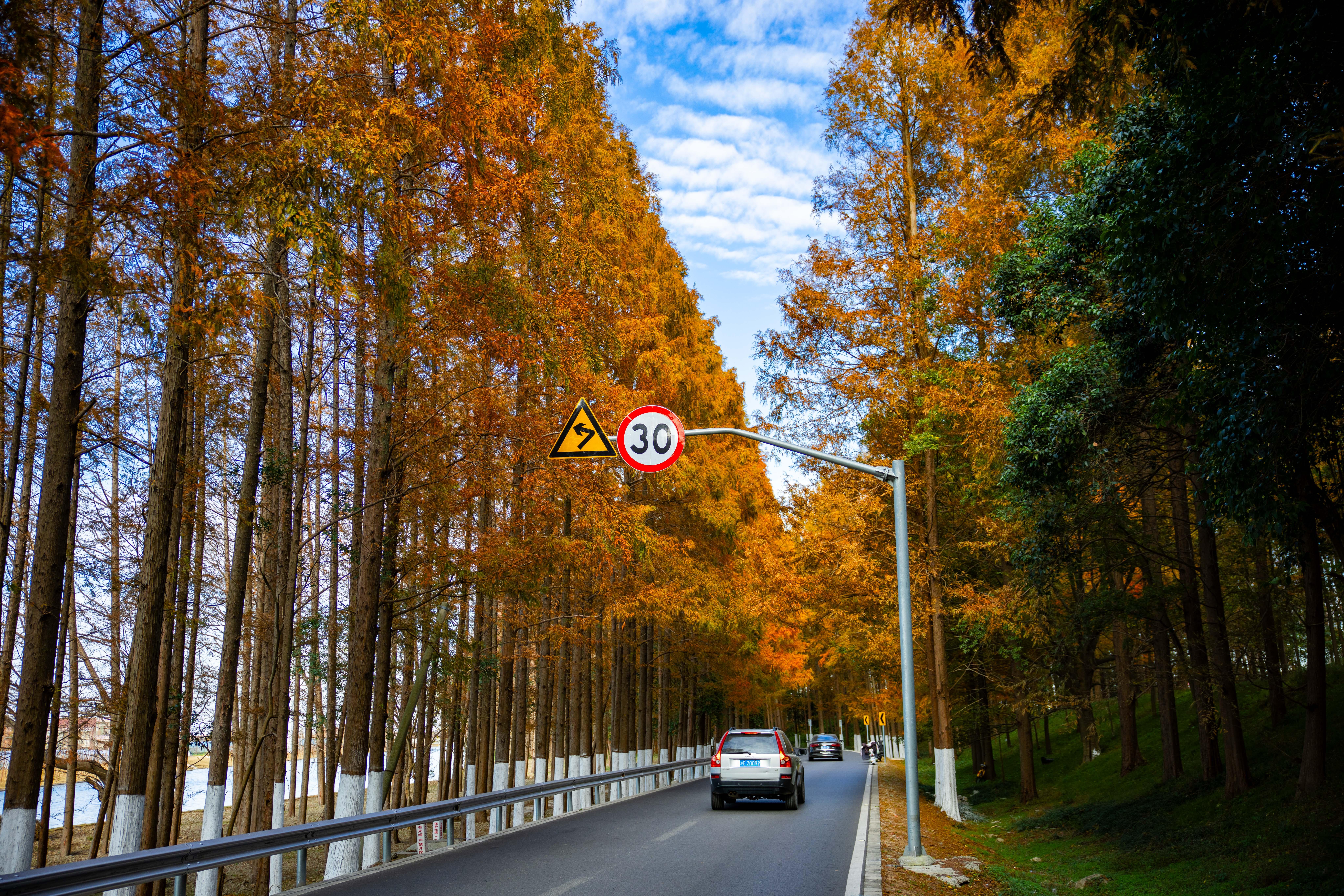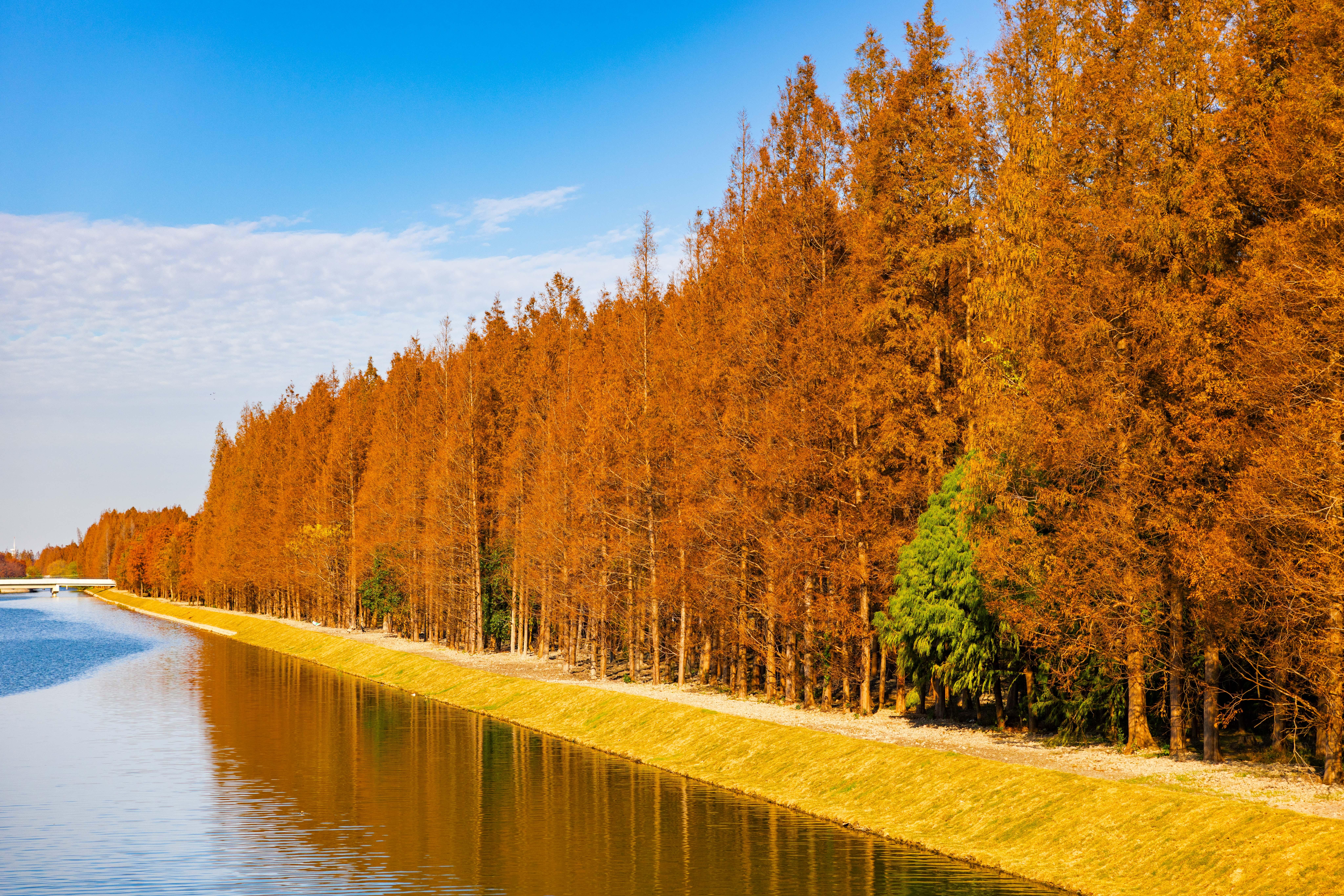 数千亩水杉林,是塘下公路最亮眼的底色。春天嫩绿如翡翠、夏天浓荫似墨染、秋天金黄赛麦浪、冬天红褐若晚霞……四季流转间,这条公路始终颜值在线。