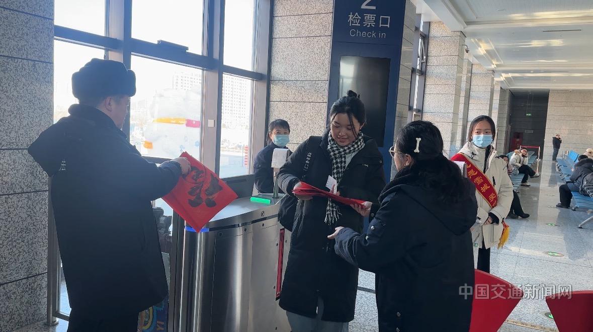 春运首日客流以探亲流、务工流、旅游流为主,铁路、公路客流预计将小幅增长。当日,各部门春运保障工作正在有力有序推进落实,其中,市交通运输执法与公安交管部门联合开展了春运交通安全宣传教育活动,并为驾驶员、旅客送春联、送祝福;交通、团委、铁路等部门组织志愿者在客运枢纽提供候车引导、行李搬运等暖心志愿服务,共同为交出一份更为安全、更具温度、更显效能、更富特色的“雪城春运答卷”助力。