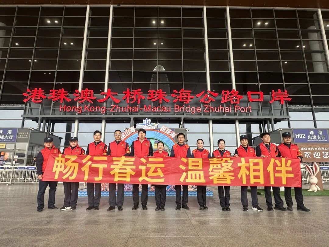 2月4日,港珠澳大桥青年志愿者服务队在大桥珠海公路口岸开展 “畅行春运、温馨相伴” 主题志愿服务活动。