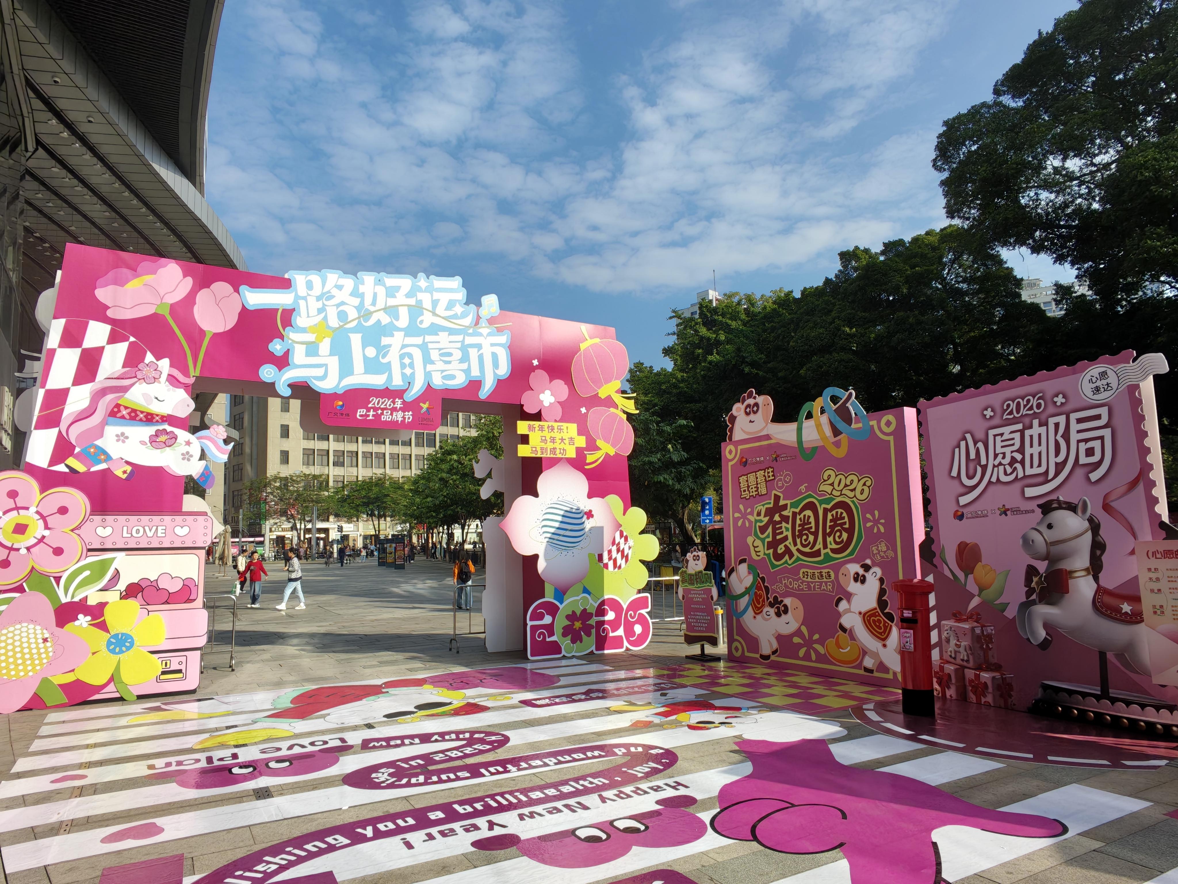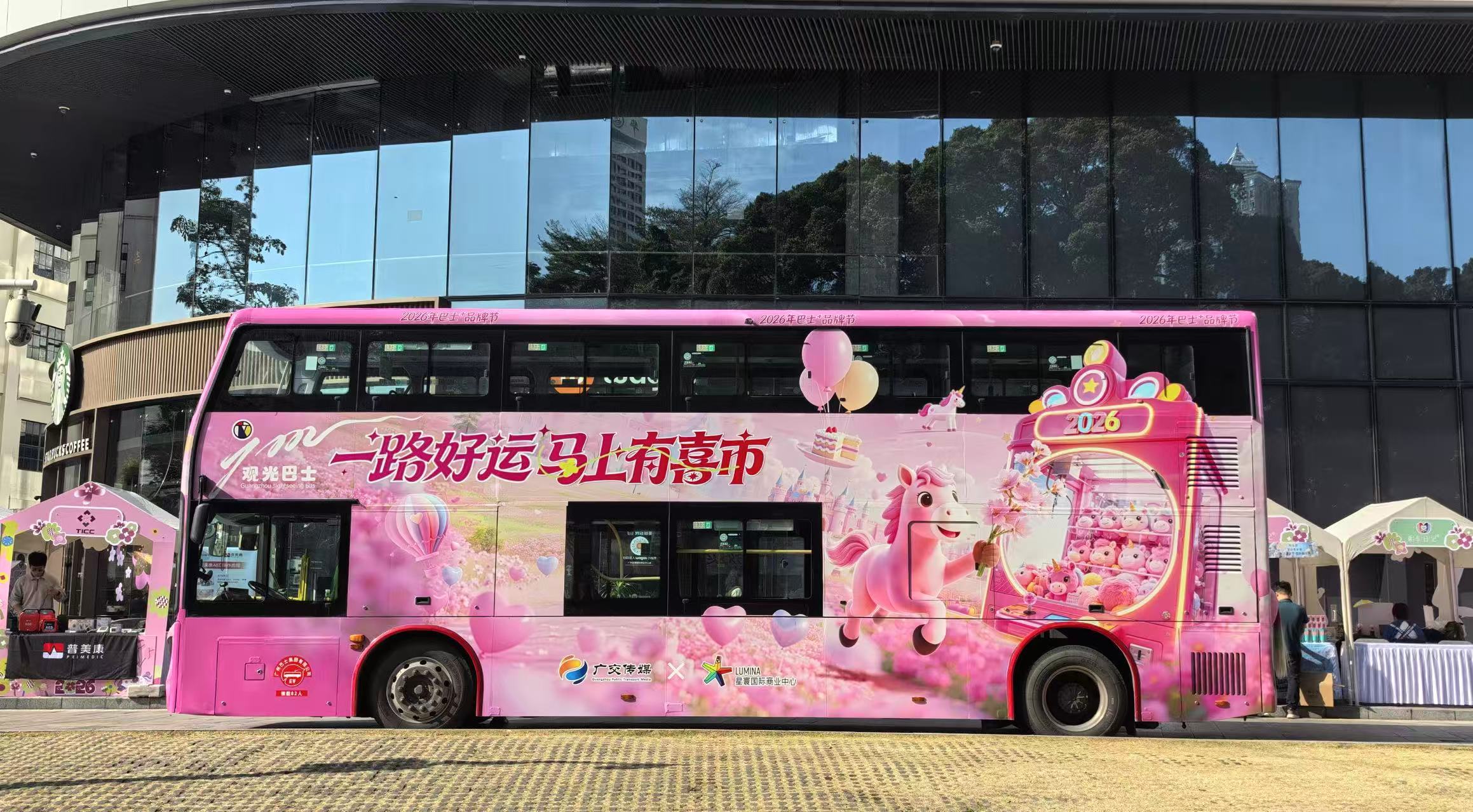 活动既是激活城市烟火气、丰富市民文旅体验的创新举措,更是串联公交场景价值、广货品牌势能与广州文旅魅力的跨界实践。马年“一路好运”主题巴士凭借3D 抓娃娃机造型与“拍马屁”互动装置,成为社交传播的热门话题;多巴胺桃花候车亭以高饱和撞色设计,精准契合年轻人打卡晒圈需求;心愿邮局、套好运游戏等互动摊位,用仪式感与趣味性拉近距离。
