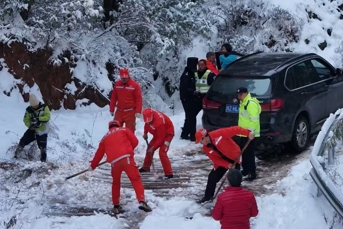 2024年春运期间,凌子口的冰凌灾害特别严重。作为应急前置保障点,老魏和同事一整天在路上融雪保通。等到夜幕降临,远处的城镇上空绽开朵朵烟花,他们才恍然:“哦,原来今天是除夕。”