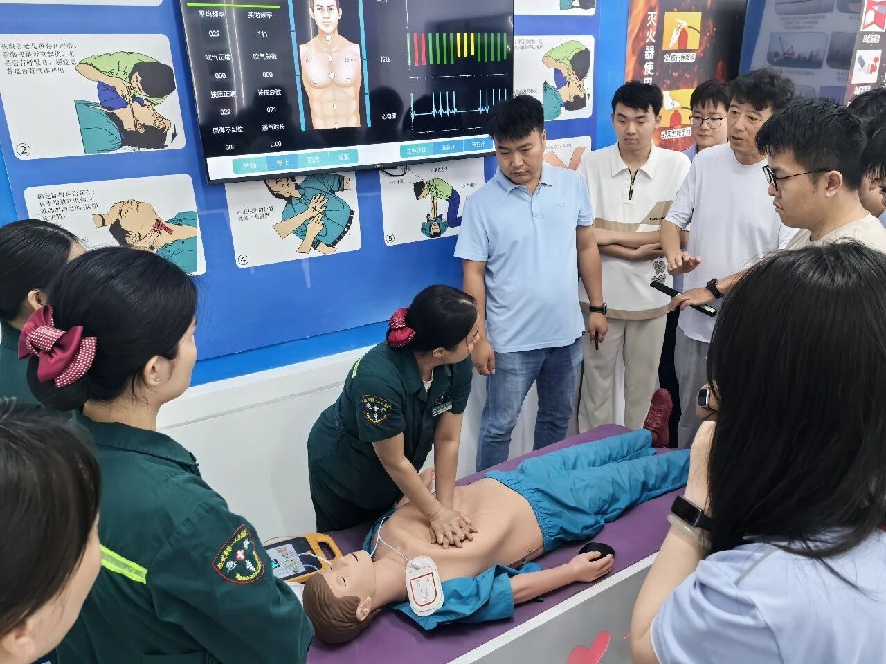 活动伊始,医疗人员结合工地作业特点,有针对性地开展健康科普,细致讲解常见传染病防护、日常保健及季节性疾病预防知识,引导职工强化健康认知、提升自我防护能力。在急救技能培训环节,医护人员手把手教学心肺复苏及自动体外除颤器(AED)规范操作流程,详细讲解中暑突发状况的应急处置方法、预防要点及注意事项,通过实操帮助职工掌握关键救护技能。