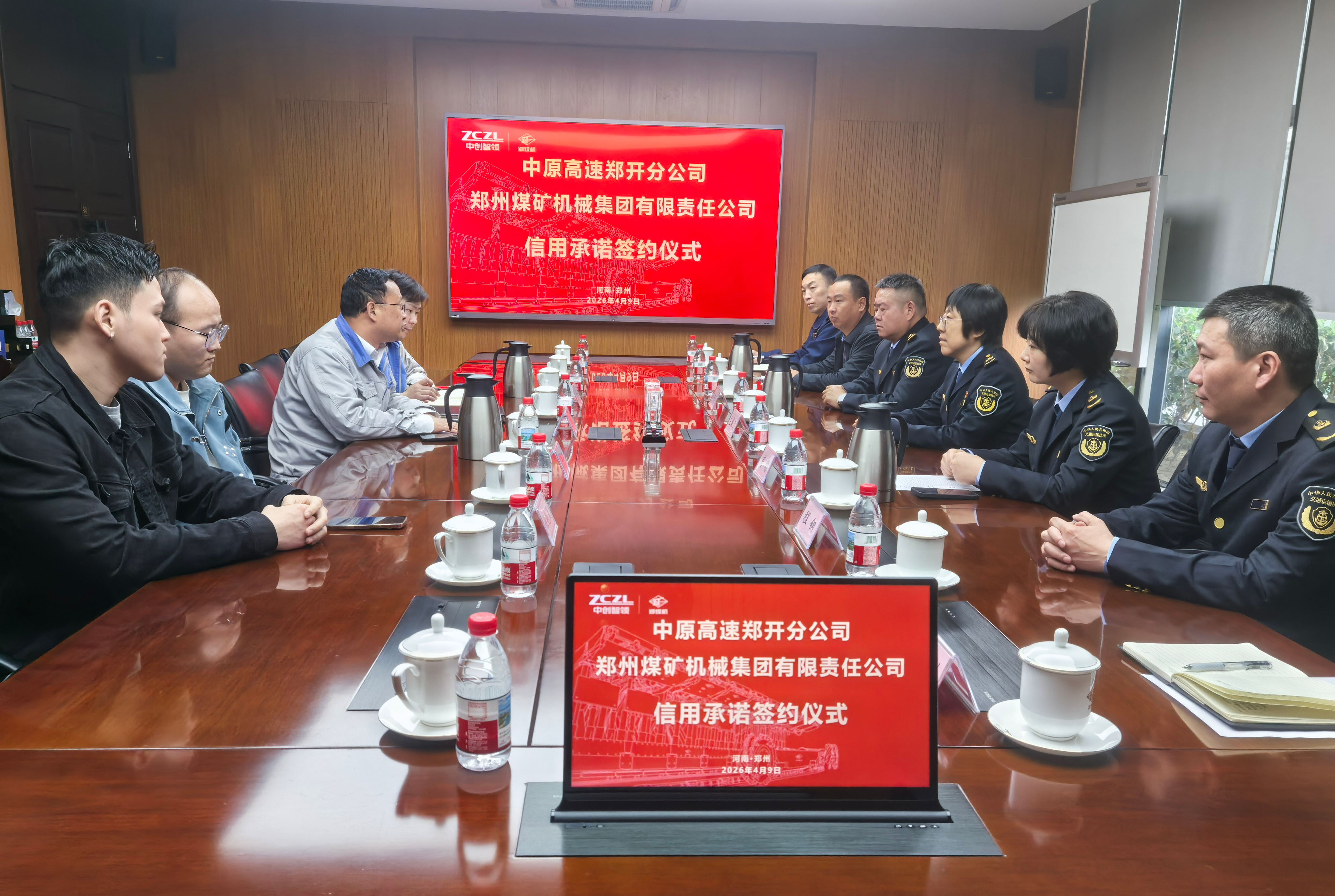 4月9日,在郑州市交通运输综合行政执法支队的牵头联合下,中原高速郑开分公司走进郑煤机集团,与集团正式签订大件运输信用承诺书,全面启动大件运输“数字赋能+无感通关”专项服务项目。这是支队继去年“信用承诺+远程核查”惠企模式后,在大件运输服务领域的又一重要跃升,标志着服务能级实现从“点上突破”到“全程贯通”的跨越。