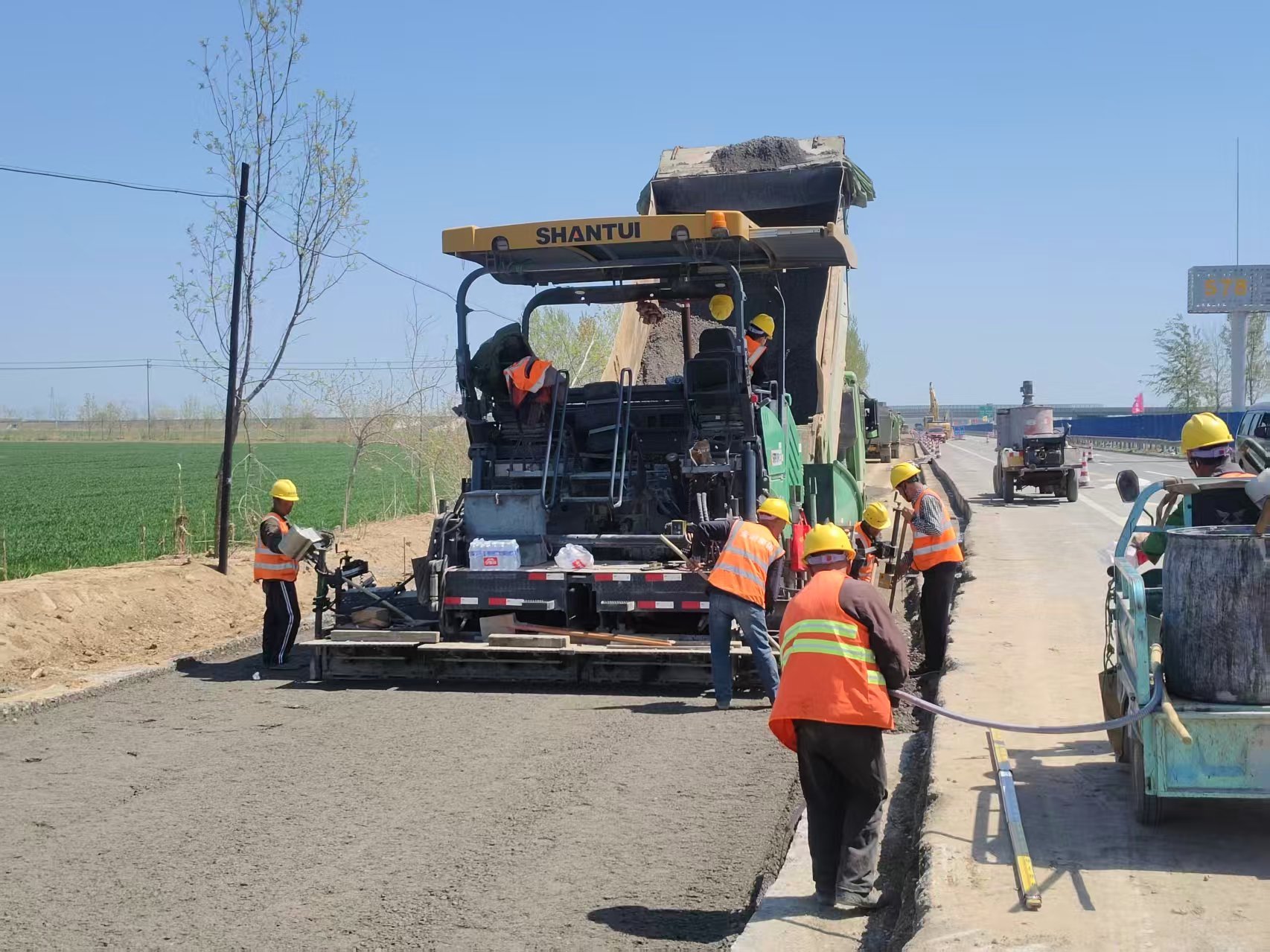 近日,河北衡水至山东德州高速公路改扩建项目左幅水稳基层摊铺作业正式启动,标志着项目路面施工进入实施阶段,摊铺机匀速前行、压路机来回碾压、运输车有序穿梭,施工现场机械轰鸣、人头攒动。