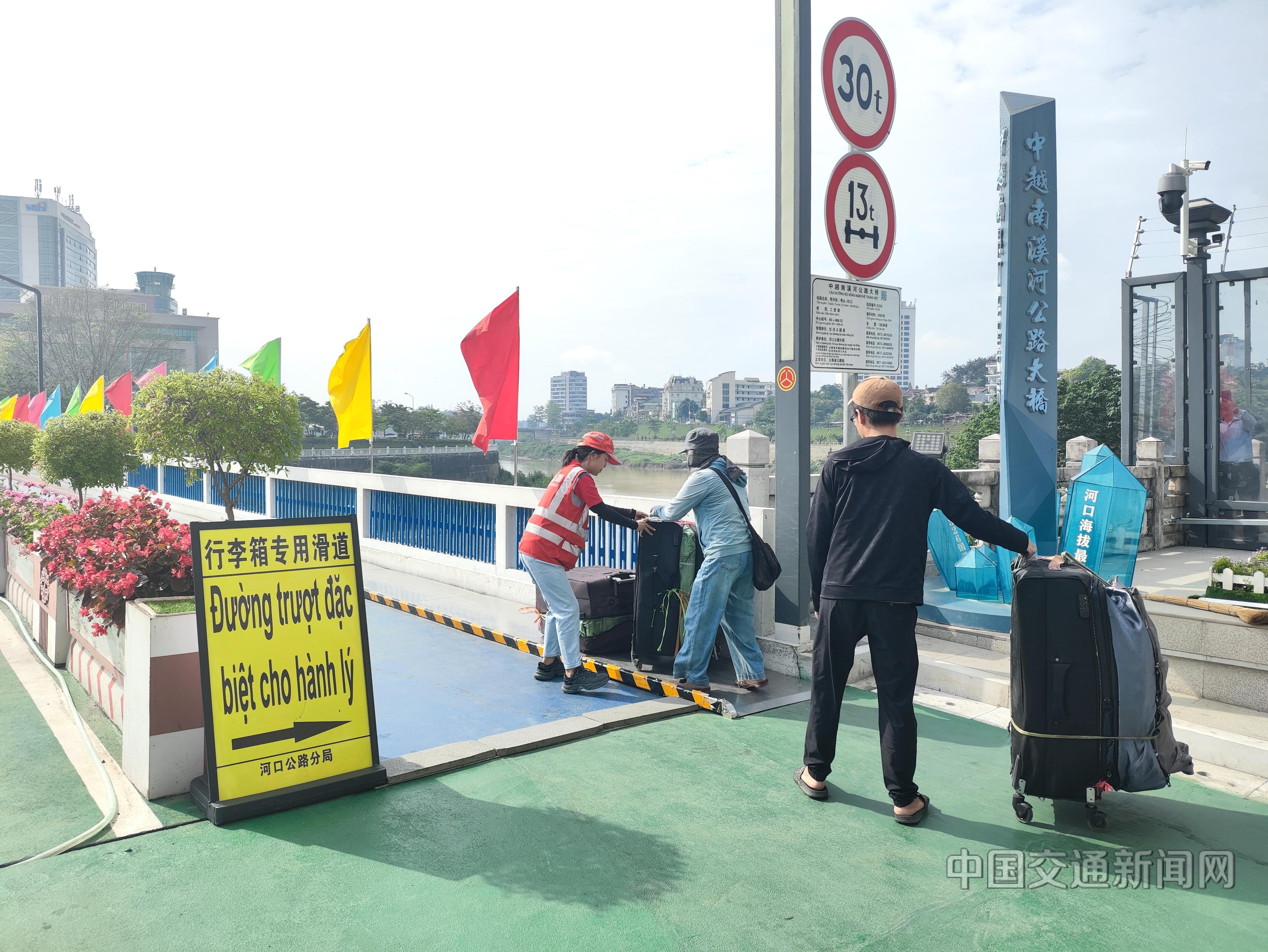 红河公路局河口分局的红河公路大桥和南溪河公路大桥,是中越两国居民往来的要道,桥上人流络绎不绝。分局在桥头建起了“六有”党员活动室,累了能歇脚、渴了能喝水、有困难能求助。设立的桥旅融合服务岗,不仅能给游客指路,还能给边民带货;看到跨境来往的边民都拖着重重的行李,工作人员特意贴心地改进了行李箱专用滑道,让边民搬运行李更省力、更便捷。口岸边,“云南公路”四个鲜红的大字格外醒目,这不仅是公路的标识,更是沿线群众心中,看得见、摸得着的暖心指引。