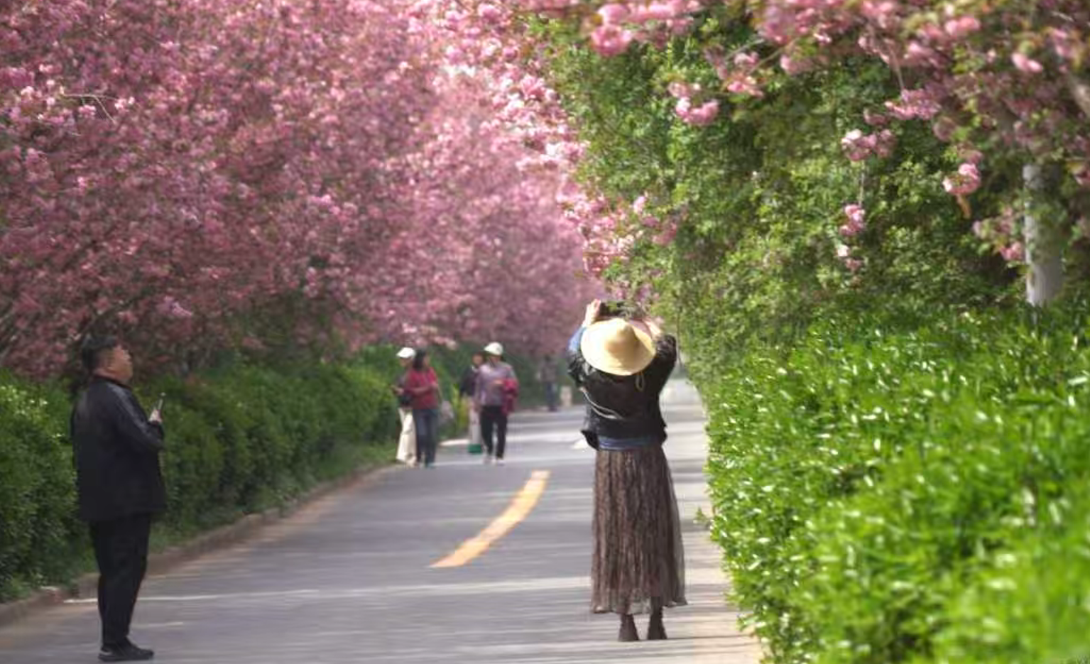 “早就听说宝丰村的樱花大道,特意趁花期来打卡。”游客李兰说,道路规划整齐、绿化景观精致,满路樱花盛开的景象格外惊艳,希望能拍出满意的照片,留住这份春日美好。