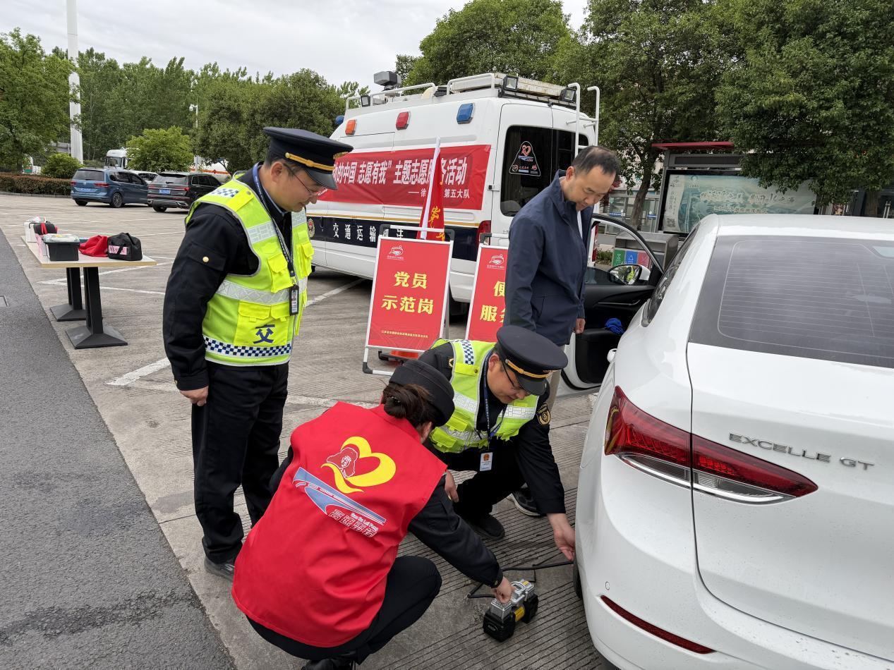4月21日,大队将“执法为民、服务发展”的核心理念转化为具体行动,在骆马湖服务区开展“流动中国 志愿有我”主题志愿服务活动。活动现场,依托“金色阳光先锋队”载体,先锋队员与青年志愿者们设立党员示范岗和便民服务台,将执法车辆变为移动的“温馨服务站”。活动现场不仅提供政策咨询、路线指引、热水供应等常规服务,还针对春季车辆易出现故障的特点,准备了便携式充气泵、急救包等物资。活动刚开始,一名小车驾驶员抱着试试看的心理前来求助,称自己开的小轿车是借朋友的,发现右后轮亏气,没有随车应急充气设备,想更换轮胎没找到拆卸工具。队员们立刻对亏气轮胎进行检查,发现没有明显破损情况后,用便携式充气泵快速为轮胎补足气压,解决了驾驶员的燃眉之急。队员们还主动对车辆其余三条轮胎的胎压进行检查,提醒驾驶员尽快对轮胎进行维护,避免出现类似情况,消除安全隐患。