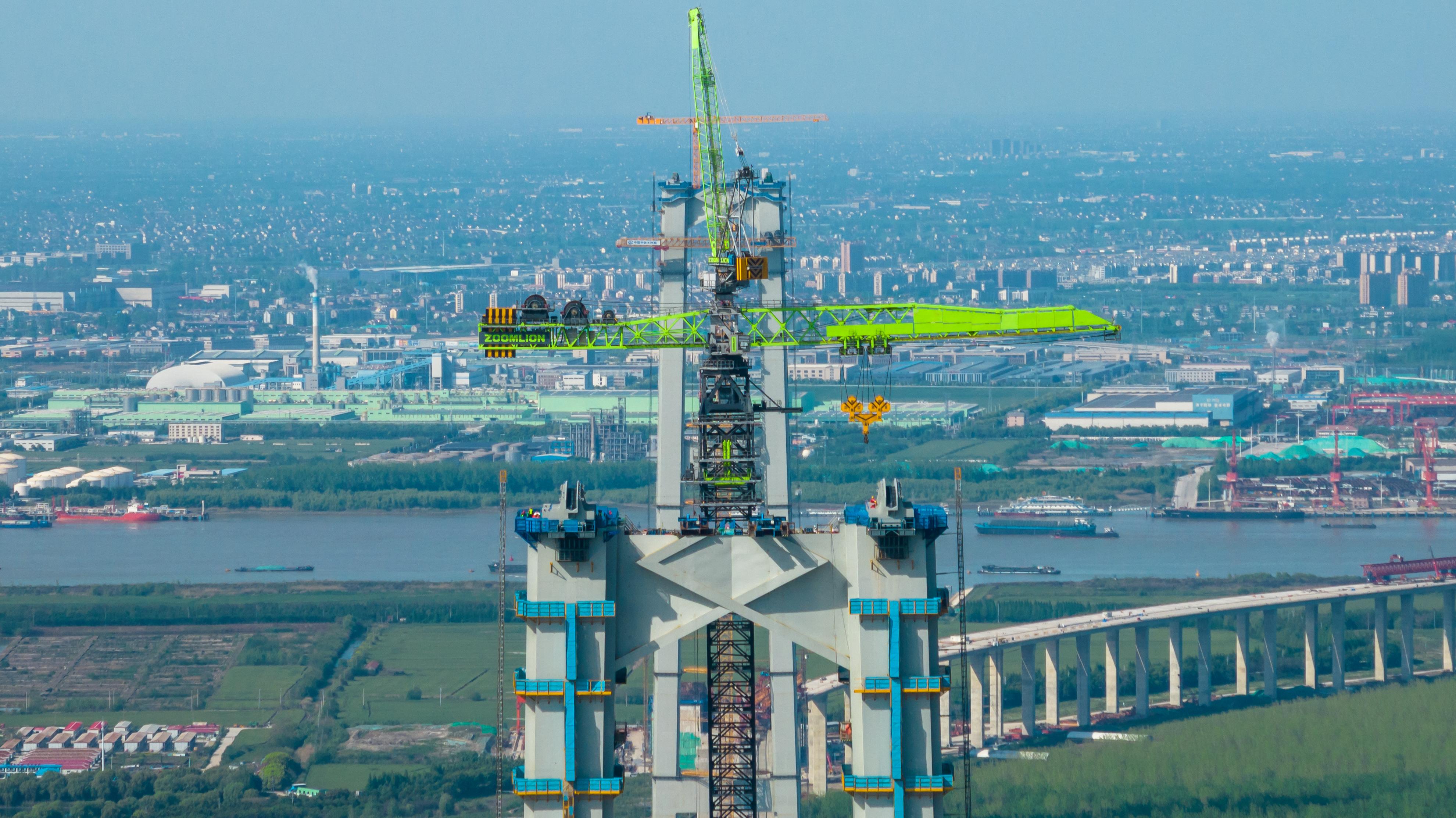 4月24日,由江苏省交通工程建设局建设、中交二公局承建的张靖皋长江大桥南航道桥南主塔主索鞍全部吊装完成,标志着世界首创的“自行走索鞍”在该超级工程中全部成功安装,为后续主缆架设奠定了基础。