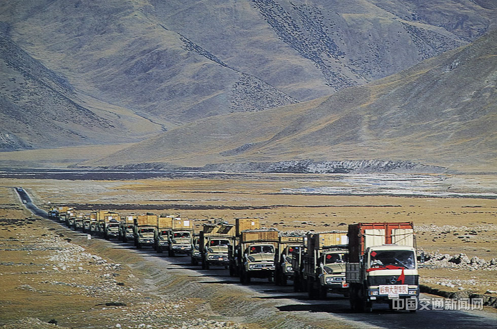 自通车的那一天起,青藏线即为生命线。图为援藏车队通过那曲。