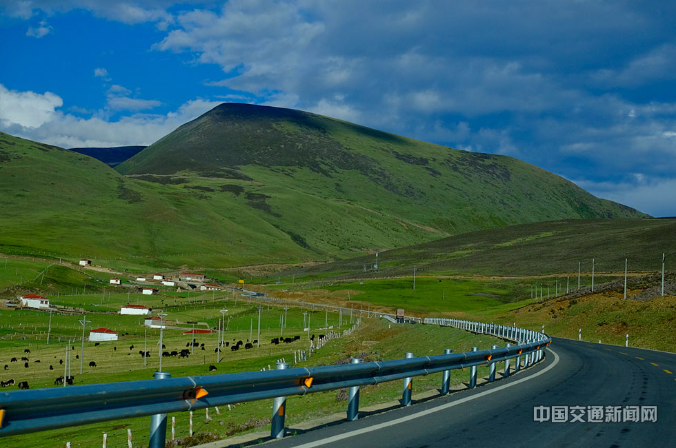 整修一新的川藏线象一条银链缠绕在黛绿的山体之上